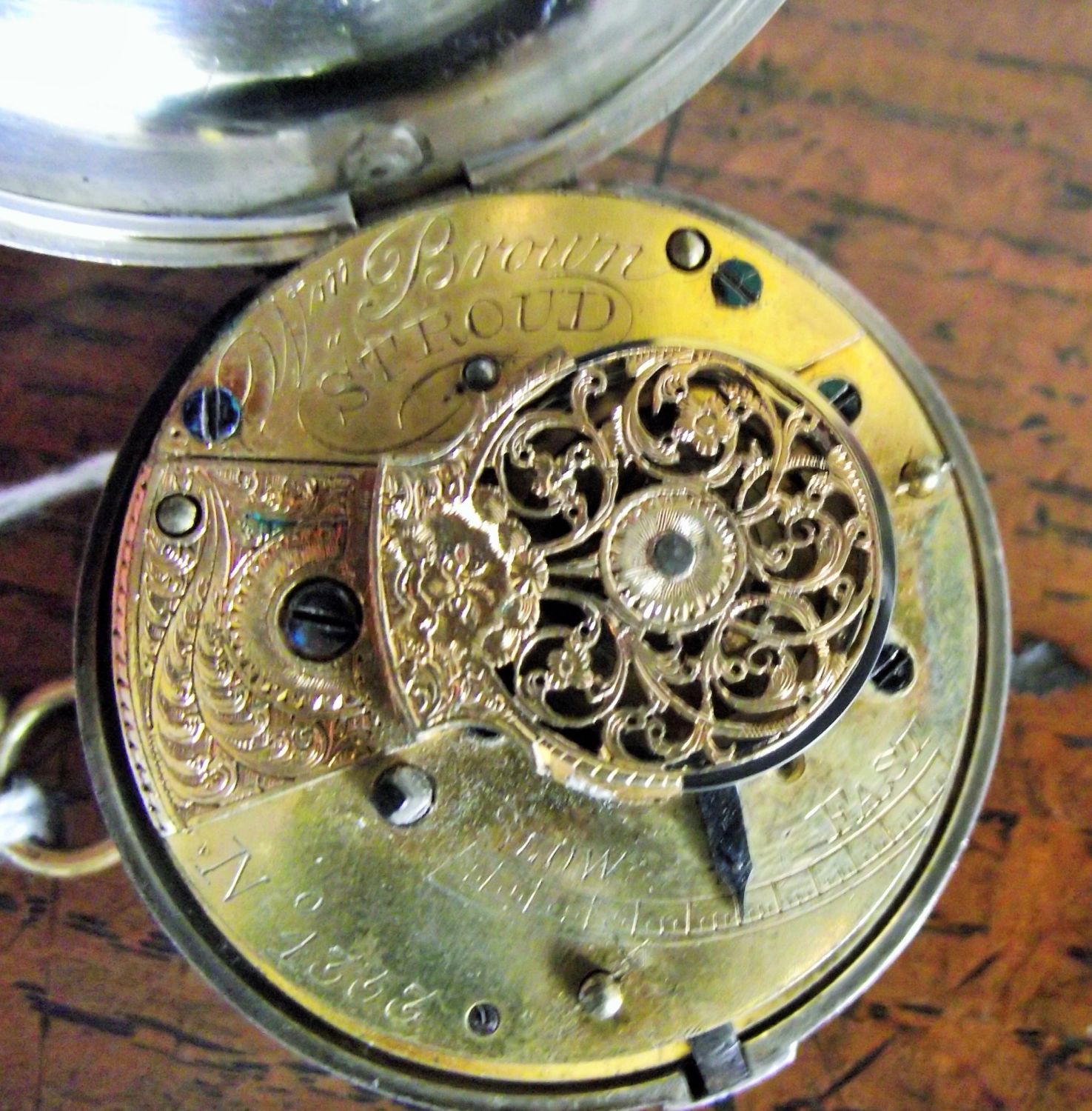 Silver key wind pear cased verge pocket watch movement signed W m brown stroud No 4353 case marked joseph Dewin London 1825 ( working )