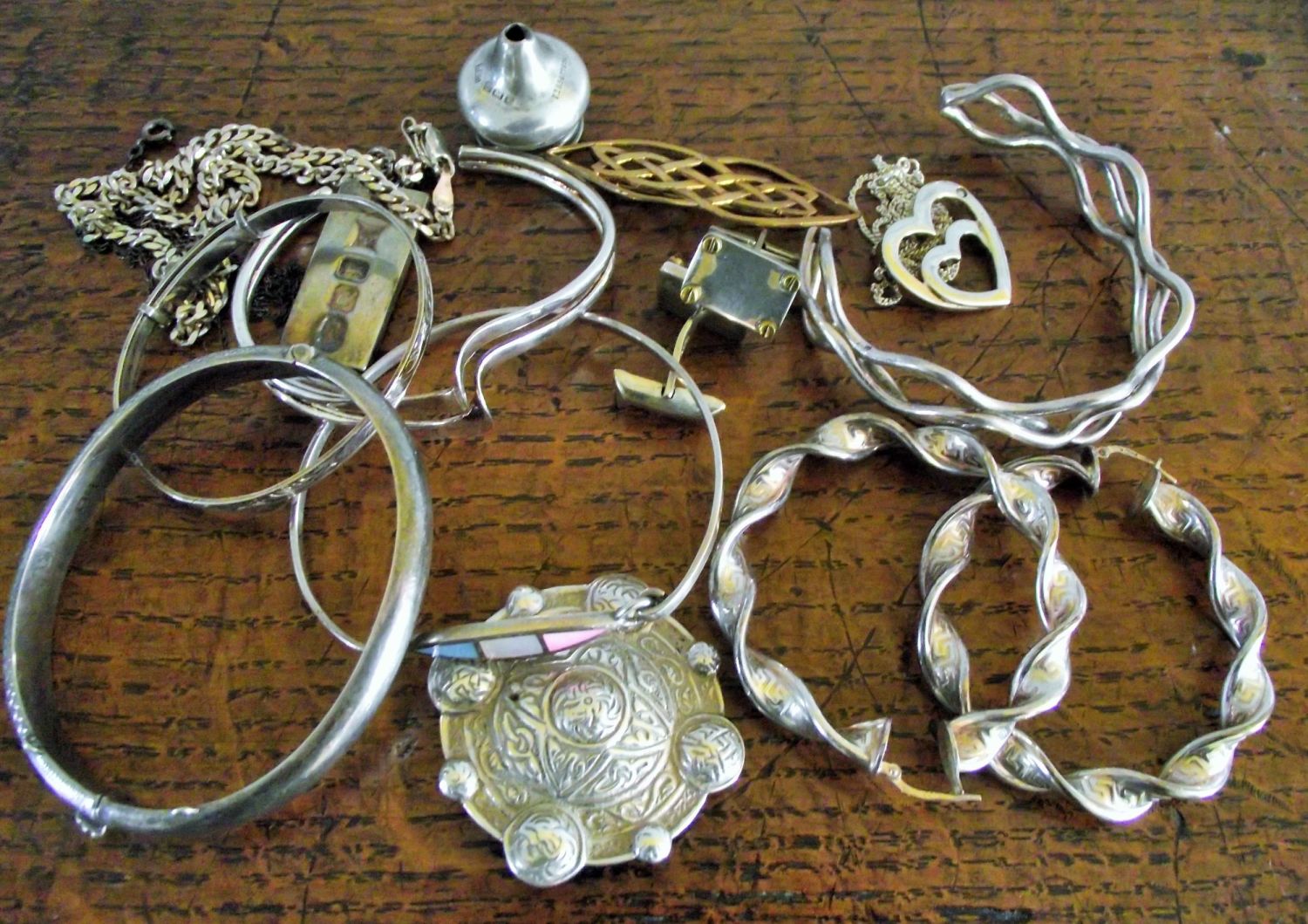 Selection of silver jewellery Bangles, earrings, pendants pot lid top etc . all marked either 925, sterling , full hall marks . 148g approx.