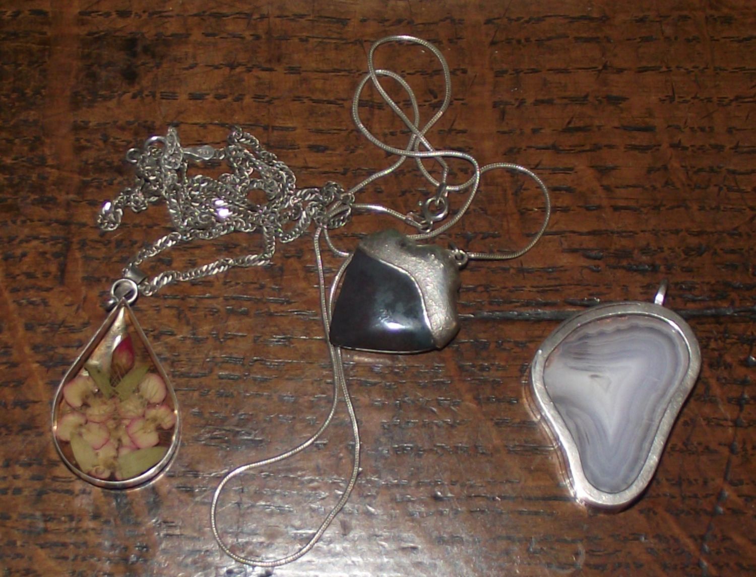 3x silver jewellery hard stone & 1 resin set pendants 2 with chains ( total weight 39g