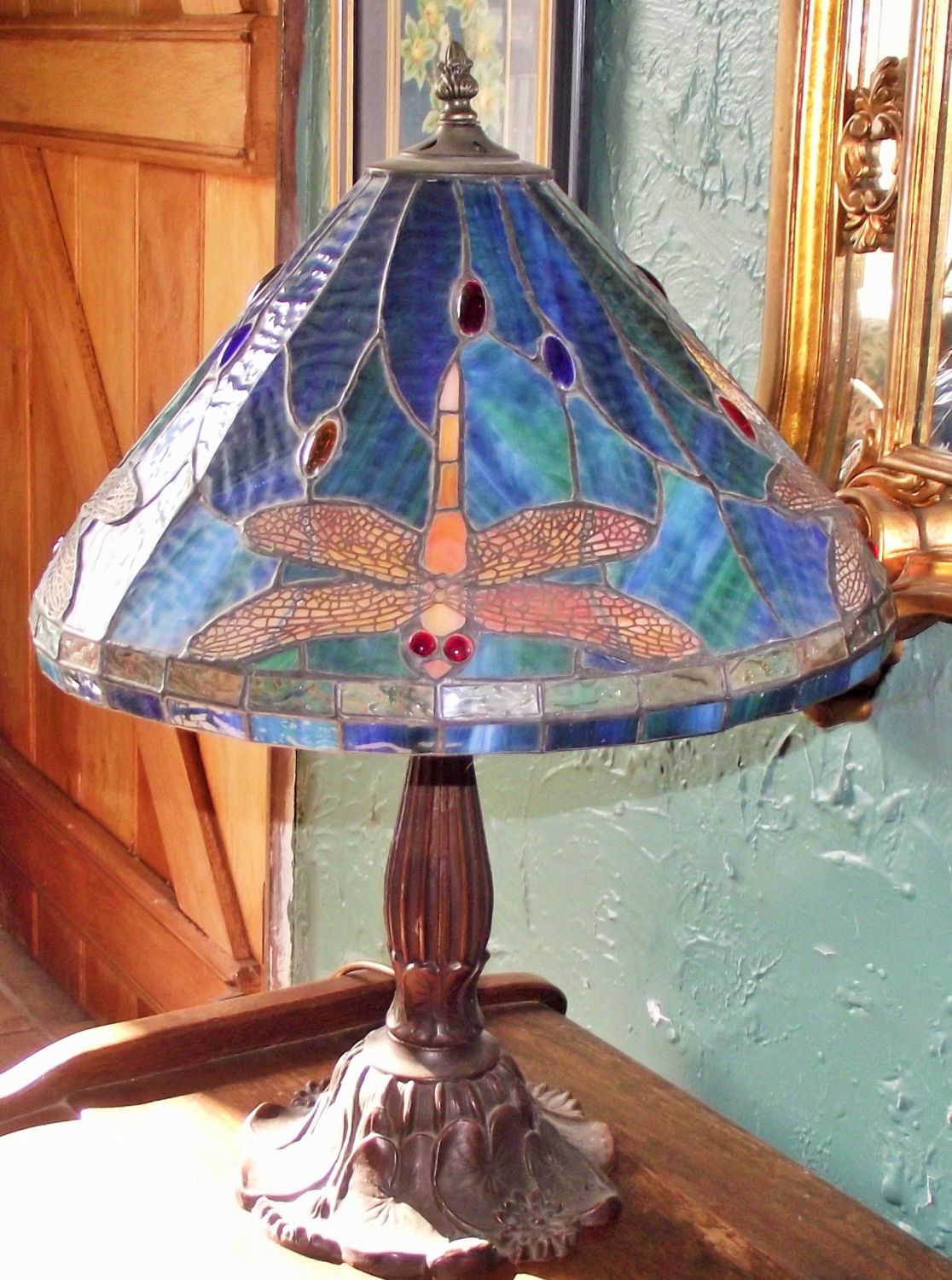 Tiffany style table lamp with dragonfly Tiffany style shade