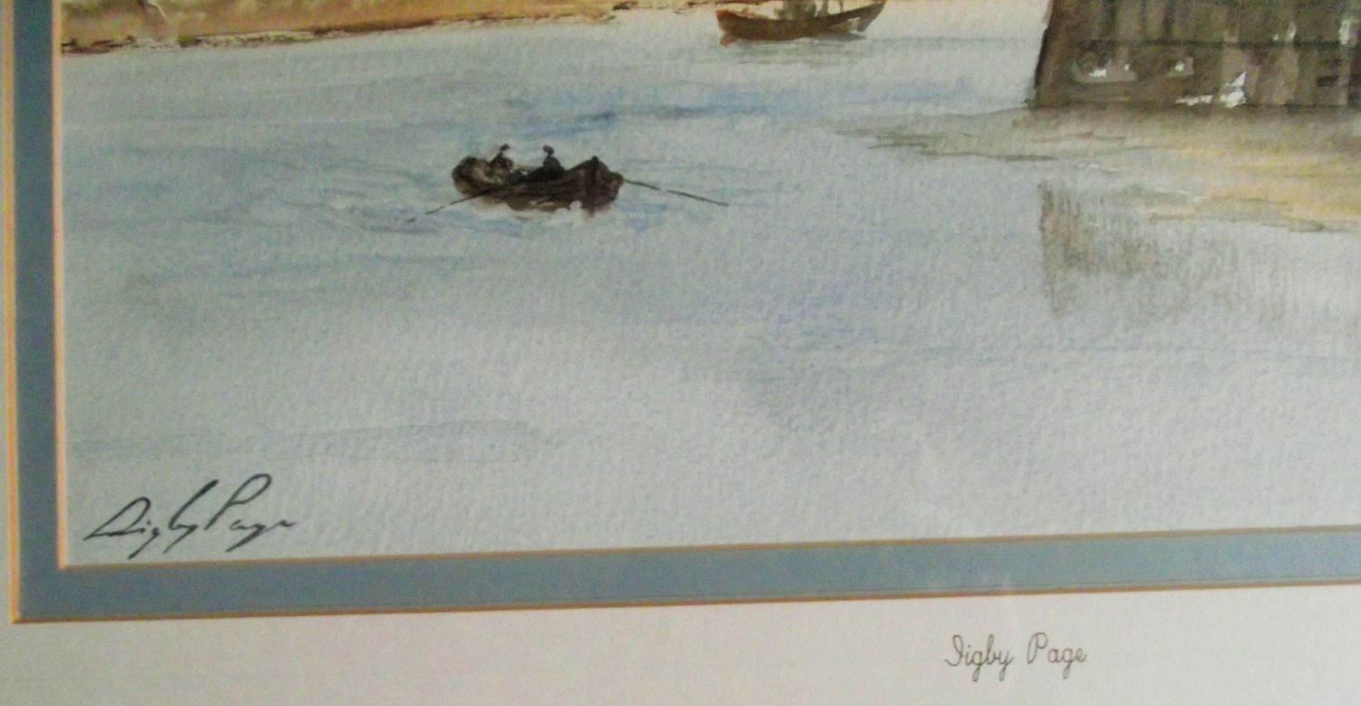 Similar lot watercolour by Digby Page (DIGBY PAGE (born 1935); signed in pencil by artist boat moored by the key. Henry Buckland Fine Art Auctioneers certificates of authenticity verso