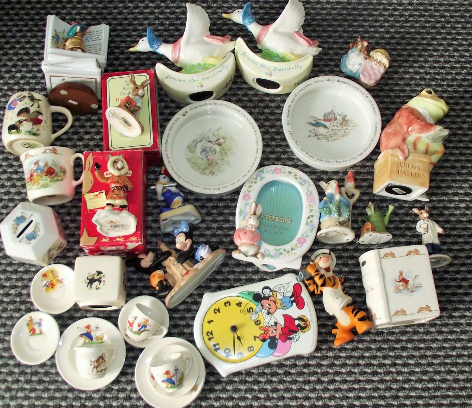 Mixed lot of collectibles Inc. Royal Doulton Bunnykins, Disney productions, Enesco, Border fine arts, Beswick, Beatrix potter etc.