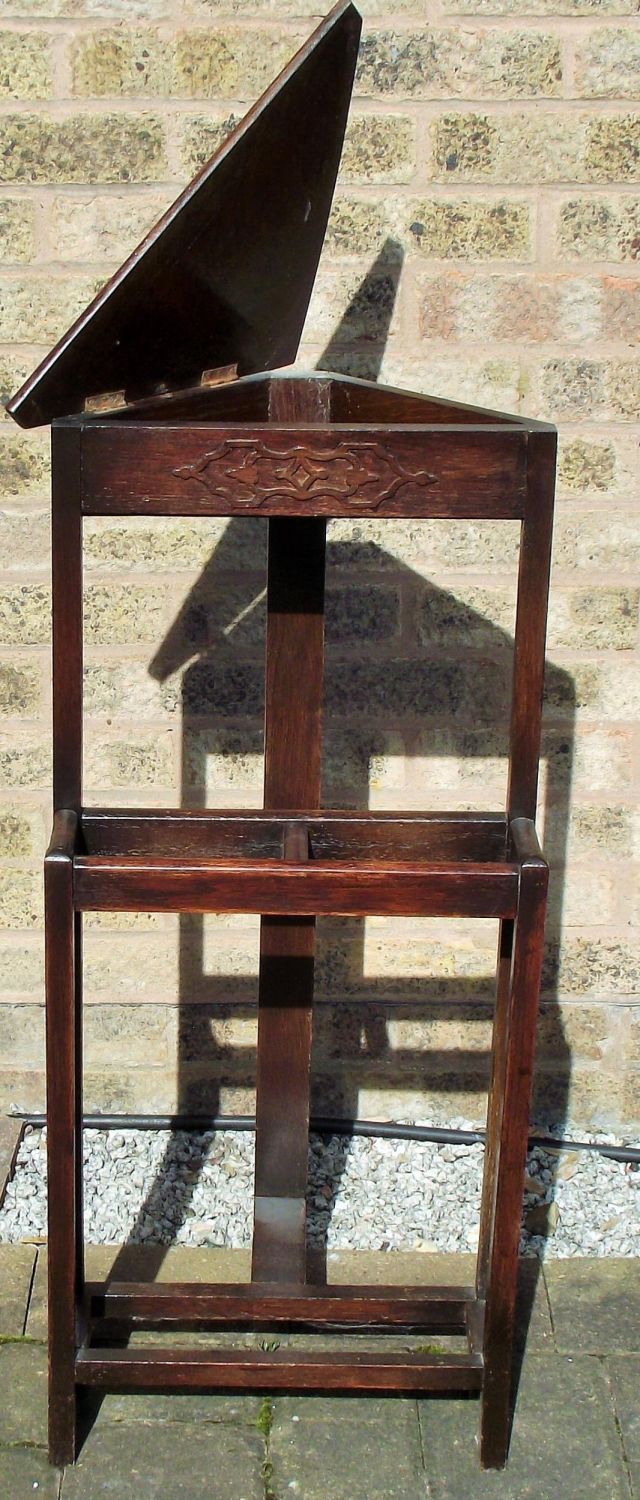 Nice vintage oak stick stand with lidded glove box compartment to top 34 high
