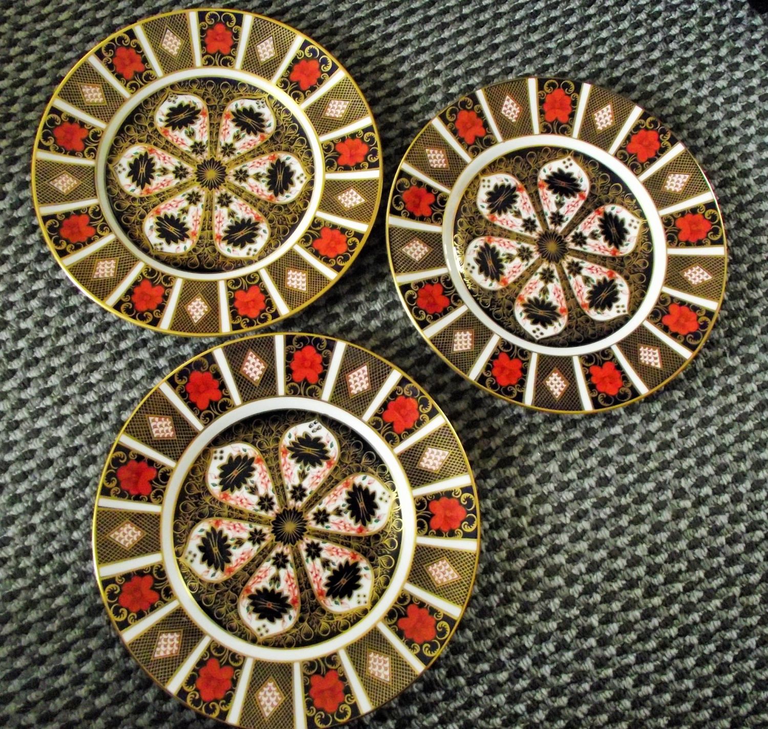 3x Royal Crown Derby 1128 pattern old Imari 10.5 dinner plates ( second quality )