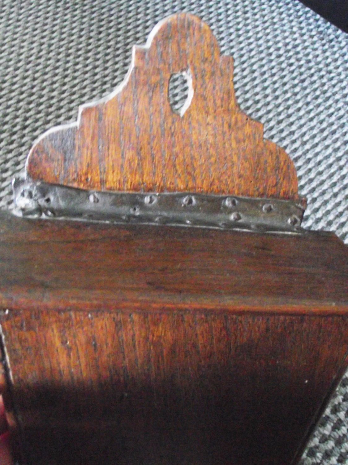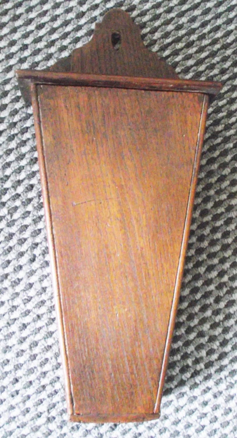 Nice Georgian style oak lidded wall hanging candle box