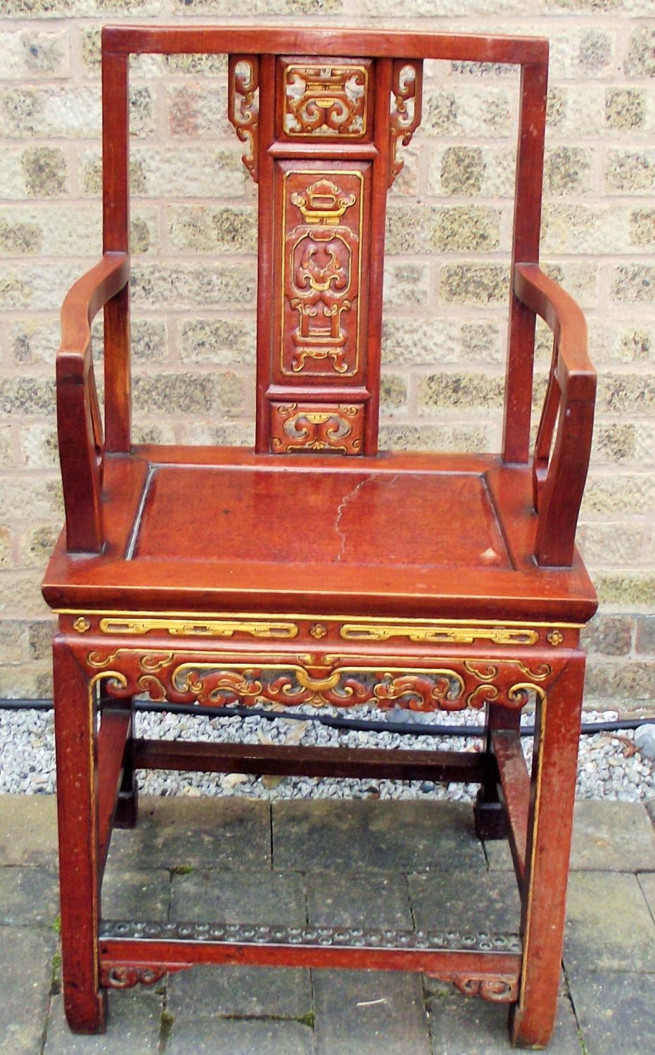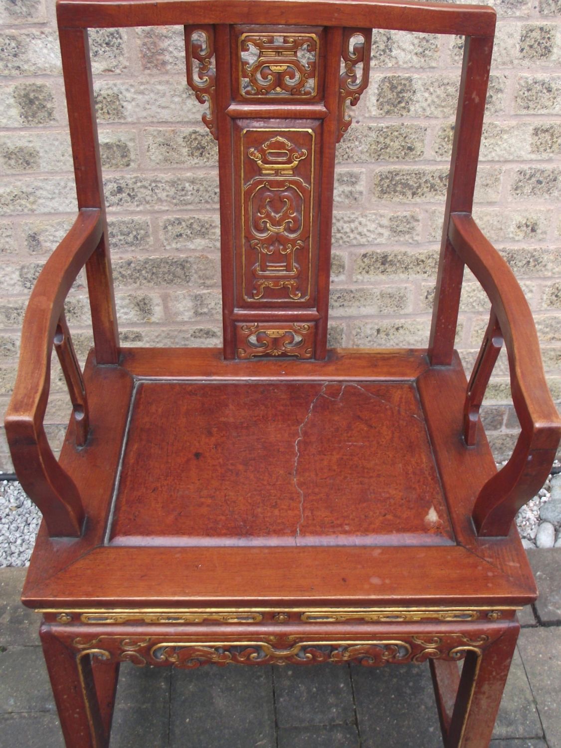 Vintage oriental style throne chair with wooden seat ( cracking to seat)