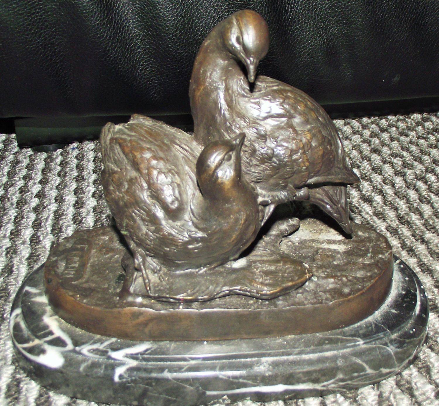 Twentieth century on a marble base hollow cast metal sculpture copy of grouse AFTER CHRISTOPHE FRATIN ,inscribed signature to base