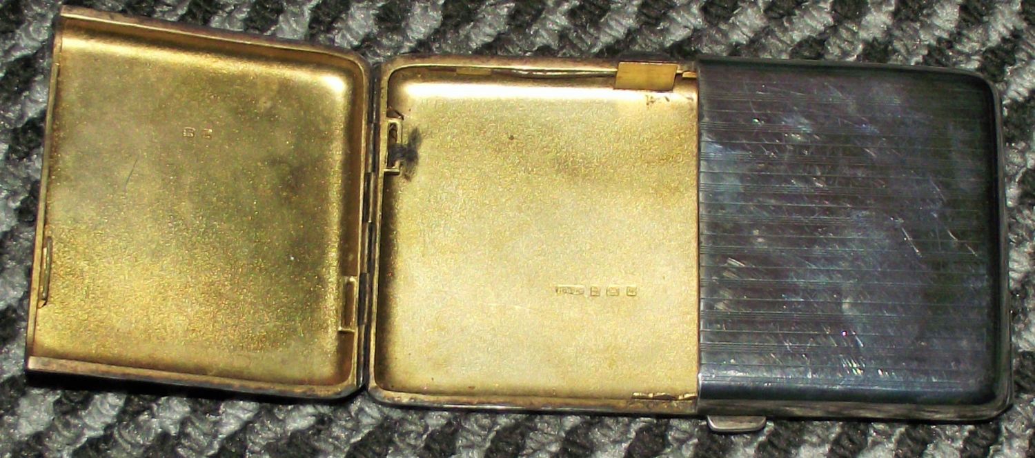 Unusual double flip side silver cigarette case 213g approx. Engine turned chasing. 1911 Birmingham Henry Williamson ltd