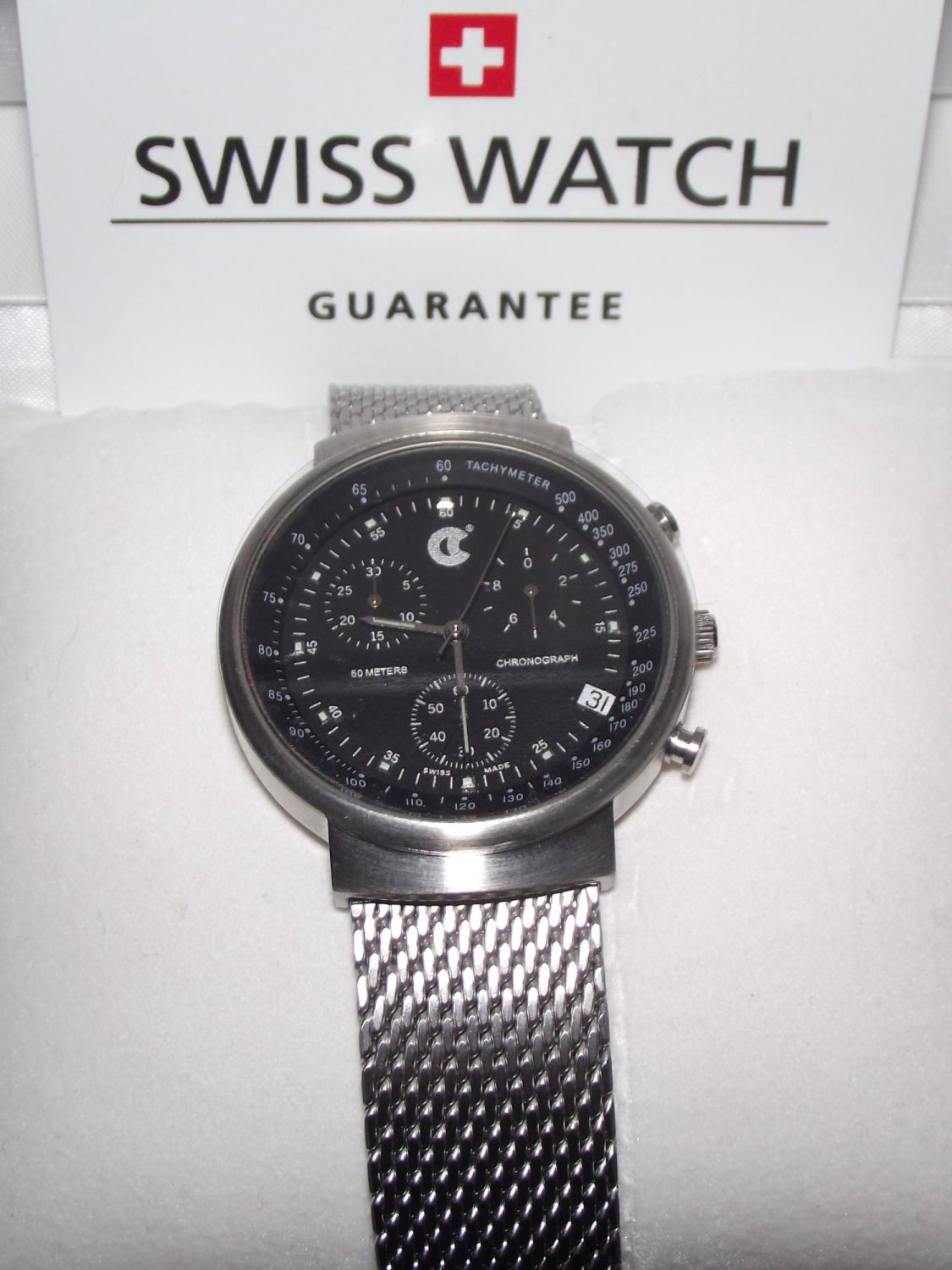 Cased gents ETA G10 Swiss wrist watch as new still with clear plastic glass face cover
