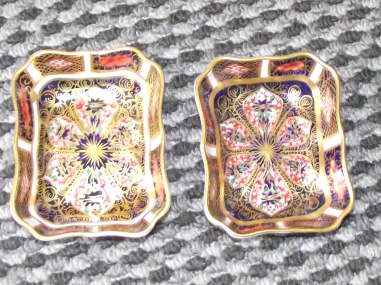 Pair of Royal Crown Derby Old Imari Full Gold Rectangular Pin / Trinket Dishes 9x 7 cm