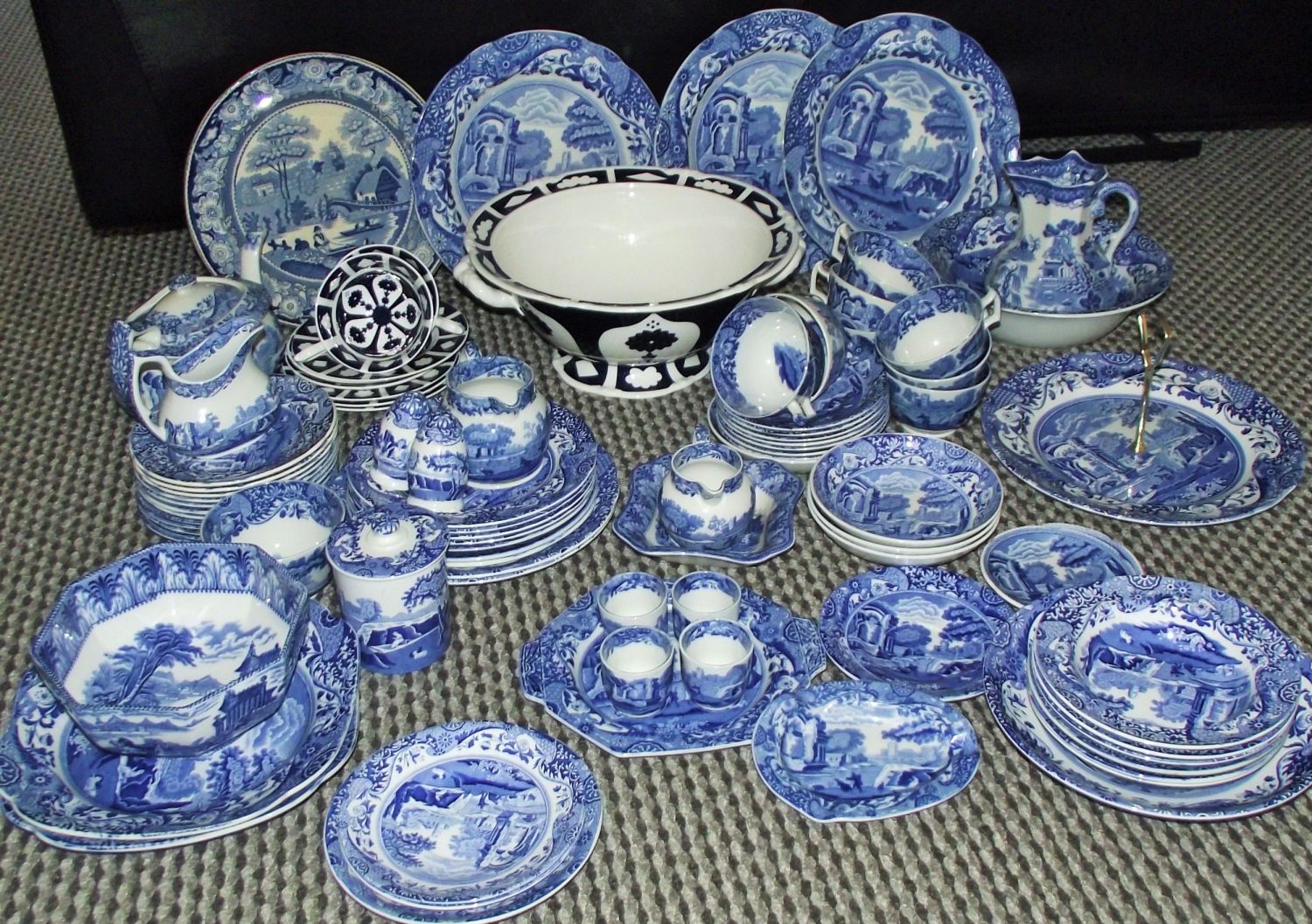 Mixed lot inc. Copeland Spode blue and white wares + Royal Crown Derby unfinished pattern large fruit bowl & other pieces 80 pieces in total