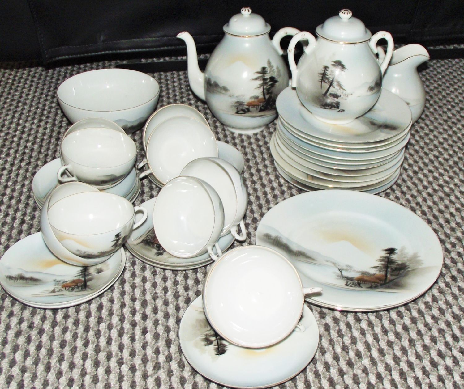 36 X piece set of vintage egg shell Japanese Kutani wares, tea pot ,cups ,saucers , plates etc.