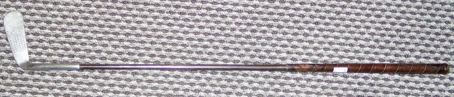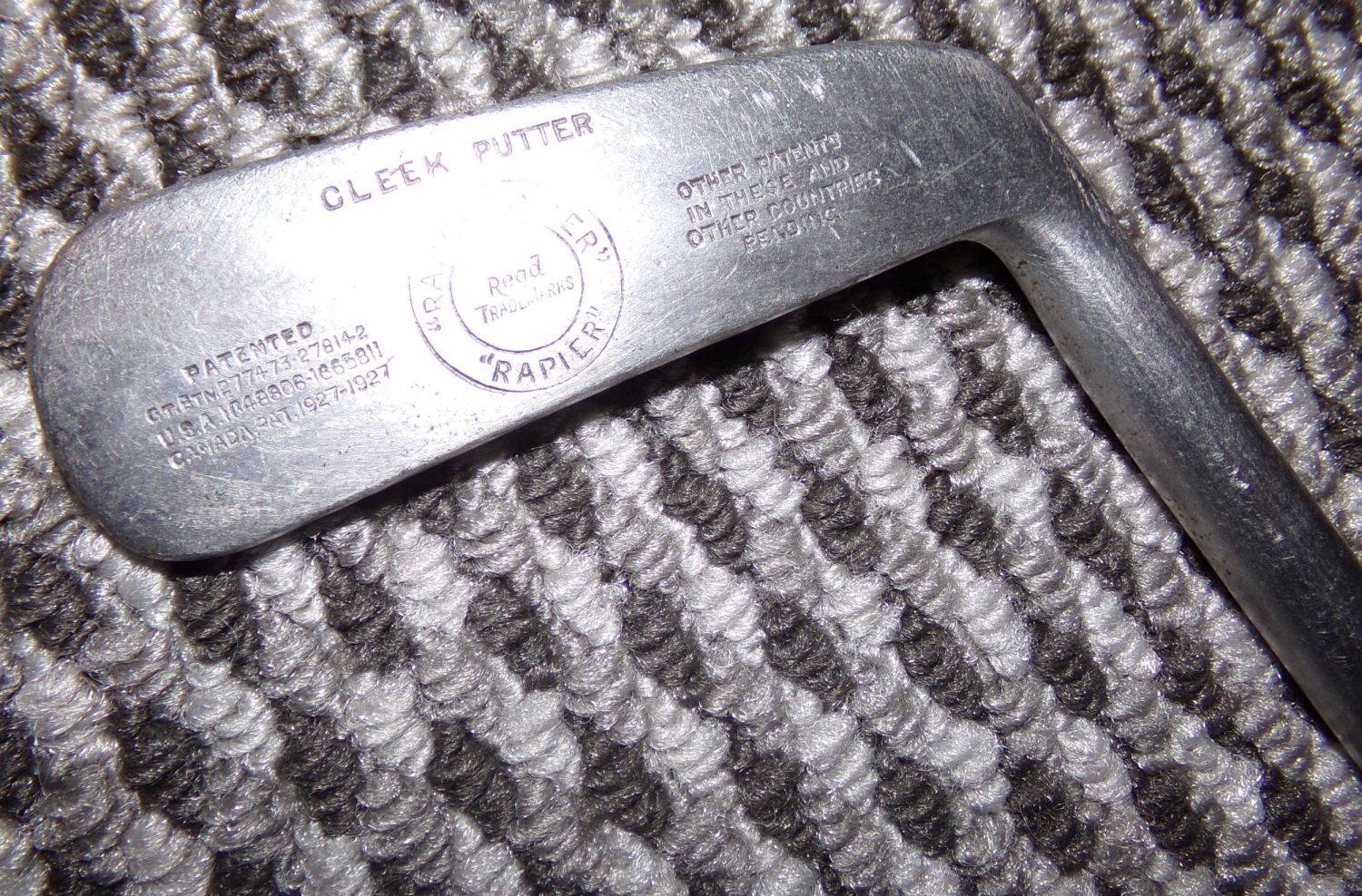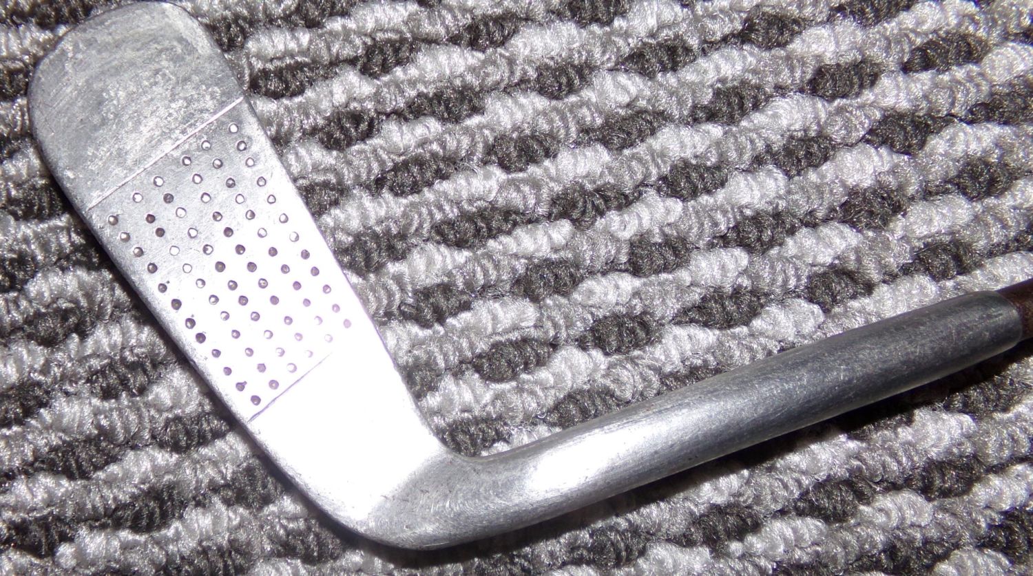 Rare Vintage |Rangefinder rapier Gleek putter on metal shaft with original leather grip 31 approx. from top of handle to heel .