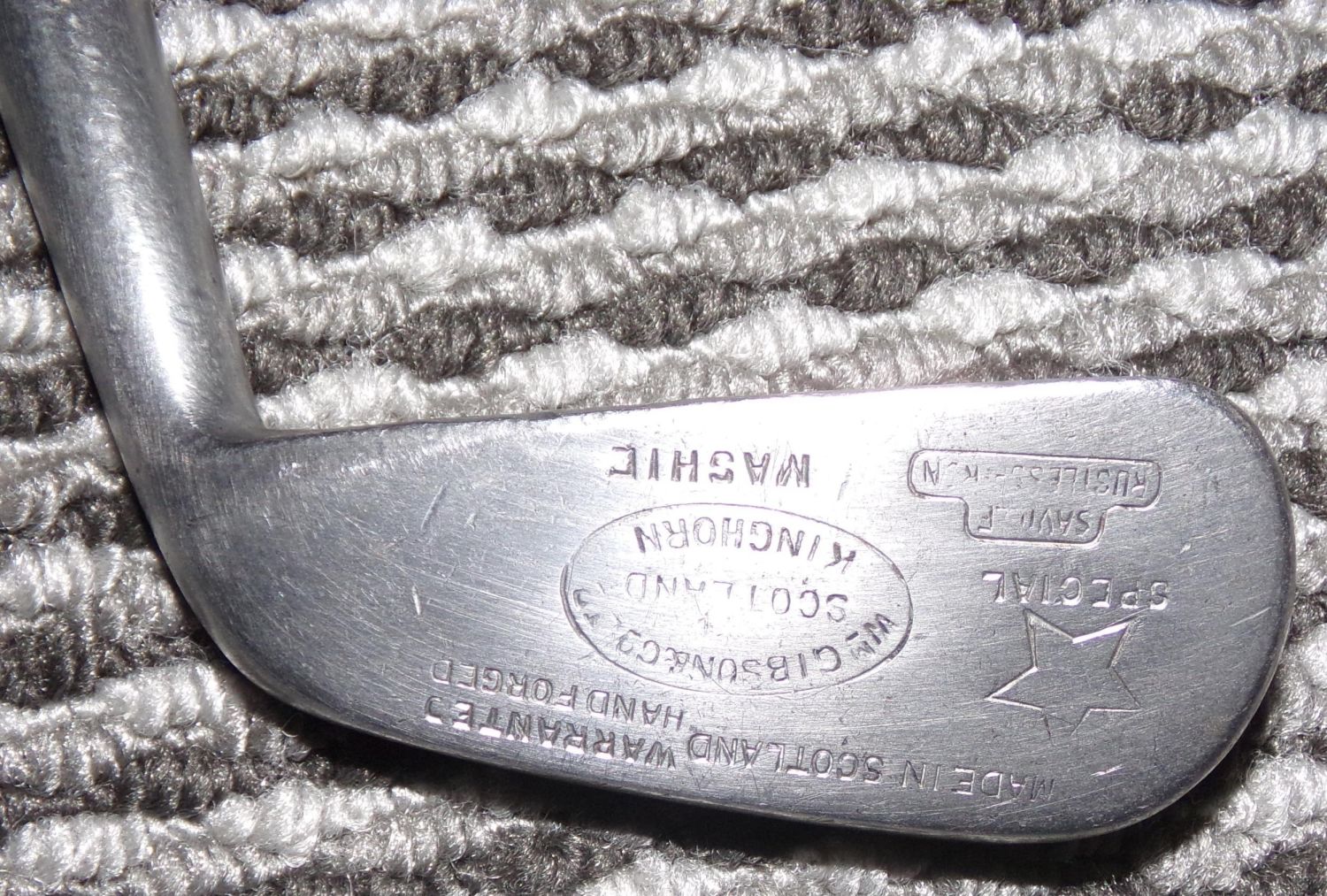 Rare Hickory shafted golf club by William Gibson Special kinghorn Mashie rust less iron on hickory handle original grip taped at ends 37.5 approx. from handle top to heel