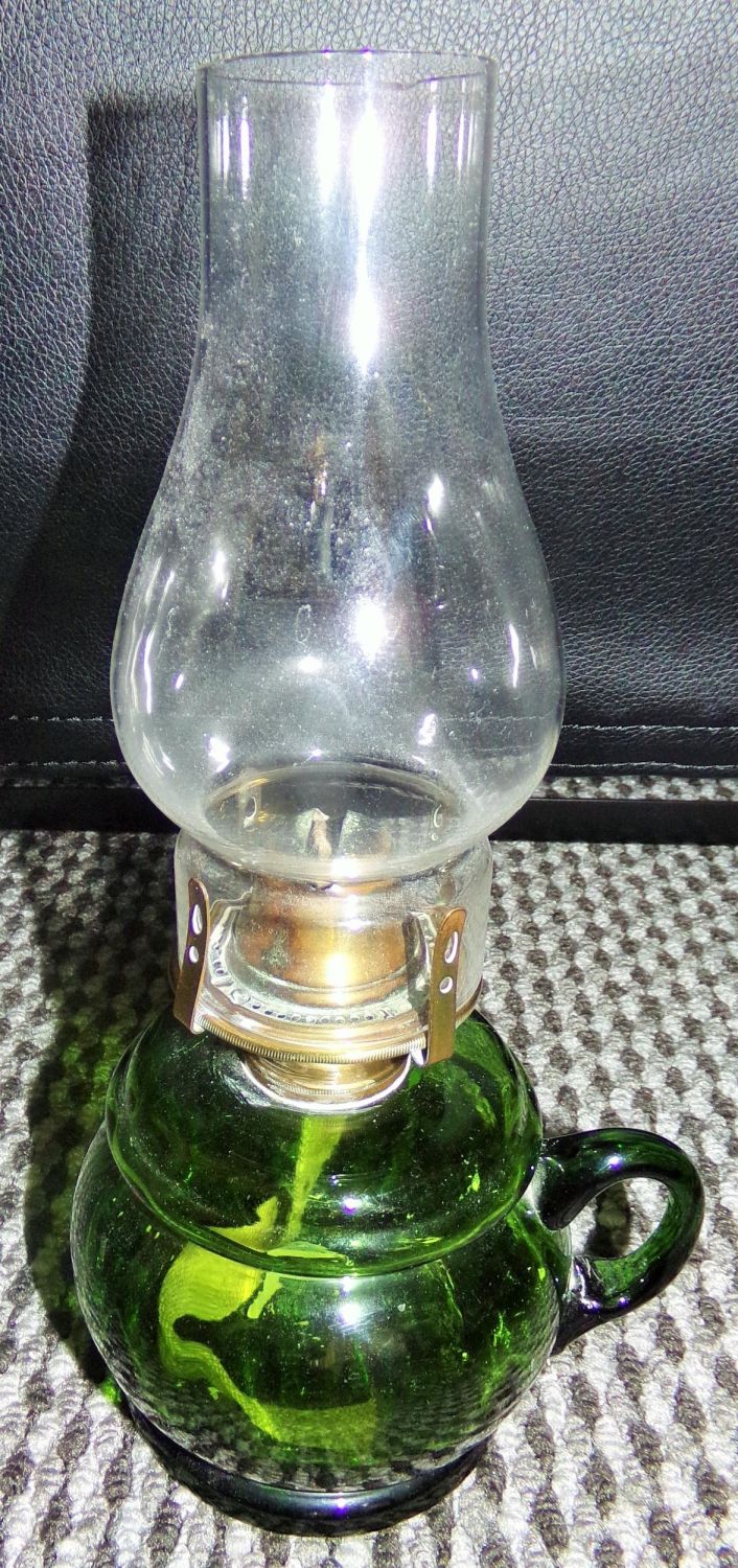 Unusual Rare Victorian green glass finger carry night light with funnel