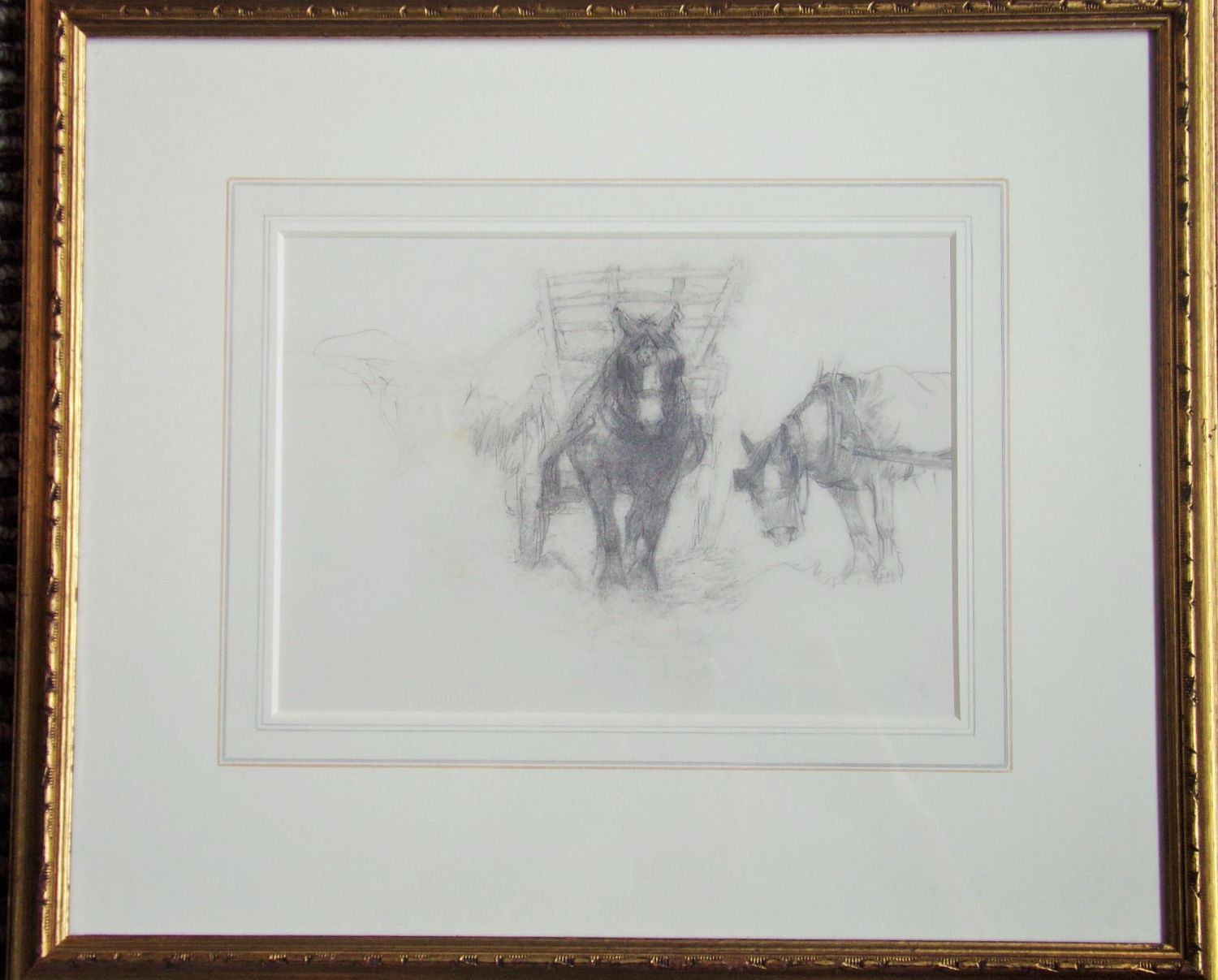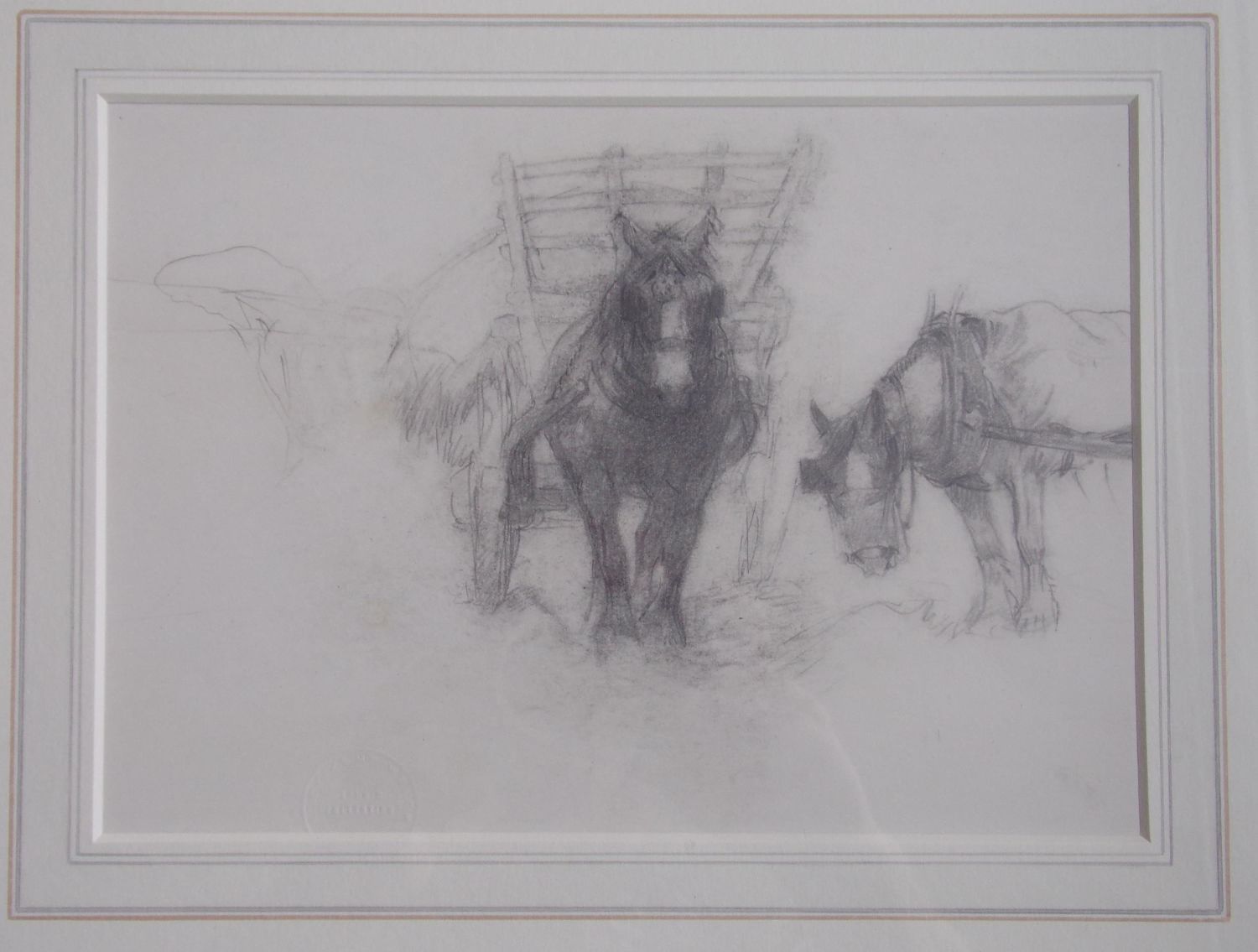 Superb Rare quality pencil sketch by Lucy Elizabeth Kemp Welch 1869/1958 RBA titled hay wain .David Messum fine art dealers label to reverse & Kemp studio embossed stamp bottom left of picture