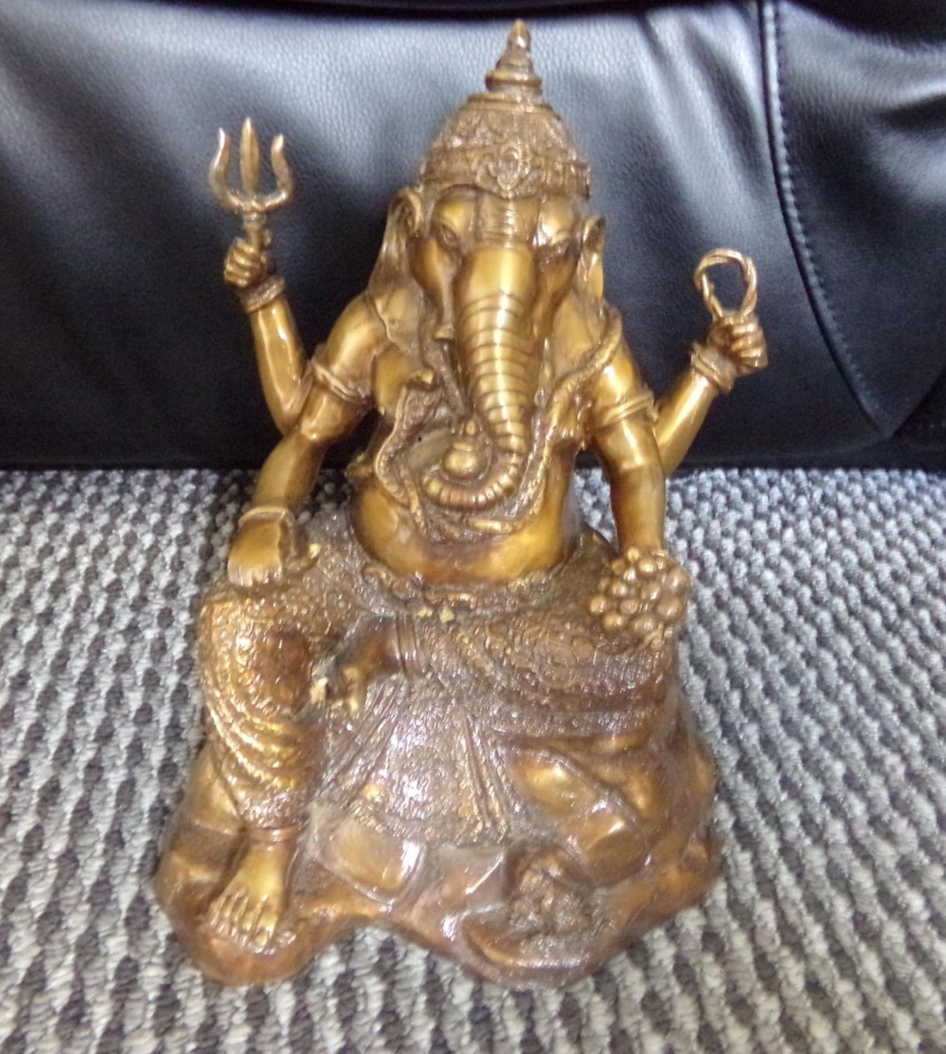 Bronzed effect hollow cast metal statue of the Hindu Elephant God Ganash 10 tall 7 at widest point