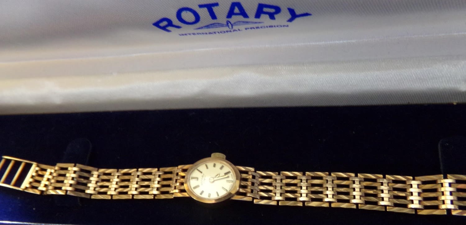 Ladies 9ct gold Rotary manual wind cocktail watch with 9ct gold gate bracelet style strap 17.9g approx.