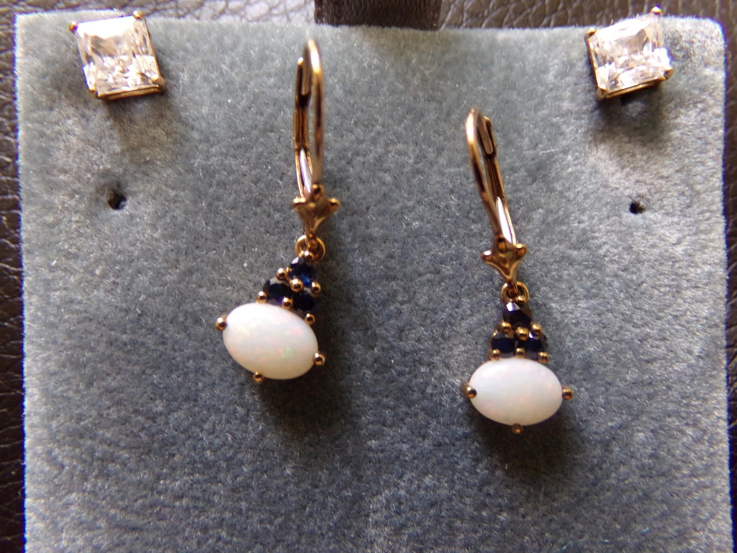 Pair of 9ct gold opal set drop earrings + set of 14ct gold CZ set stud earrings