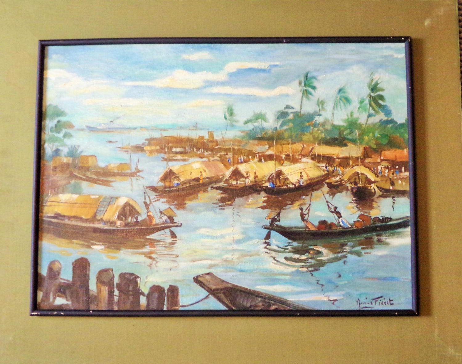 Good quality oil on canvas by Maurice fievet 1915/1997 from his expedition to Nigeria for the French government in 1949/59 .picture size 29×31approx. signed lower right