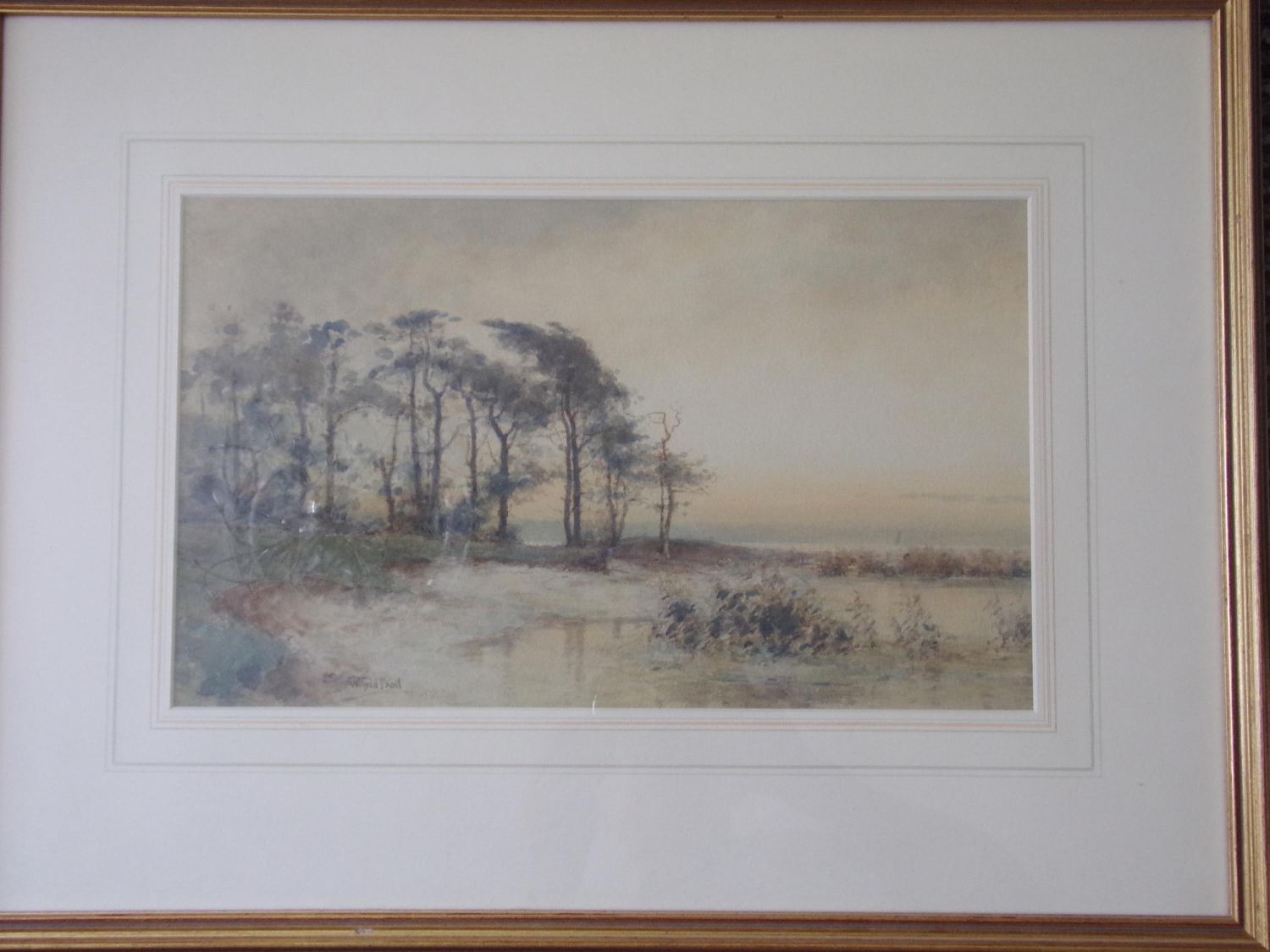 Lovely Signed quality Victorian framed & glazed watercolour by Wilfred ball signed lower left. (Wilfrid Williams Ball (18531917) British Victorian and Edwardian painter of landscapes & marine subjects. Exhibitioner at the Royal Academy, awarded Bronze medal in Paris exhibition in 1900. Picture 23x38cm approx. overall frame size 45x60cm Swan galleries Dorset gallery label to reverse