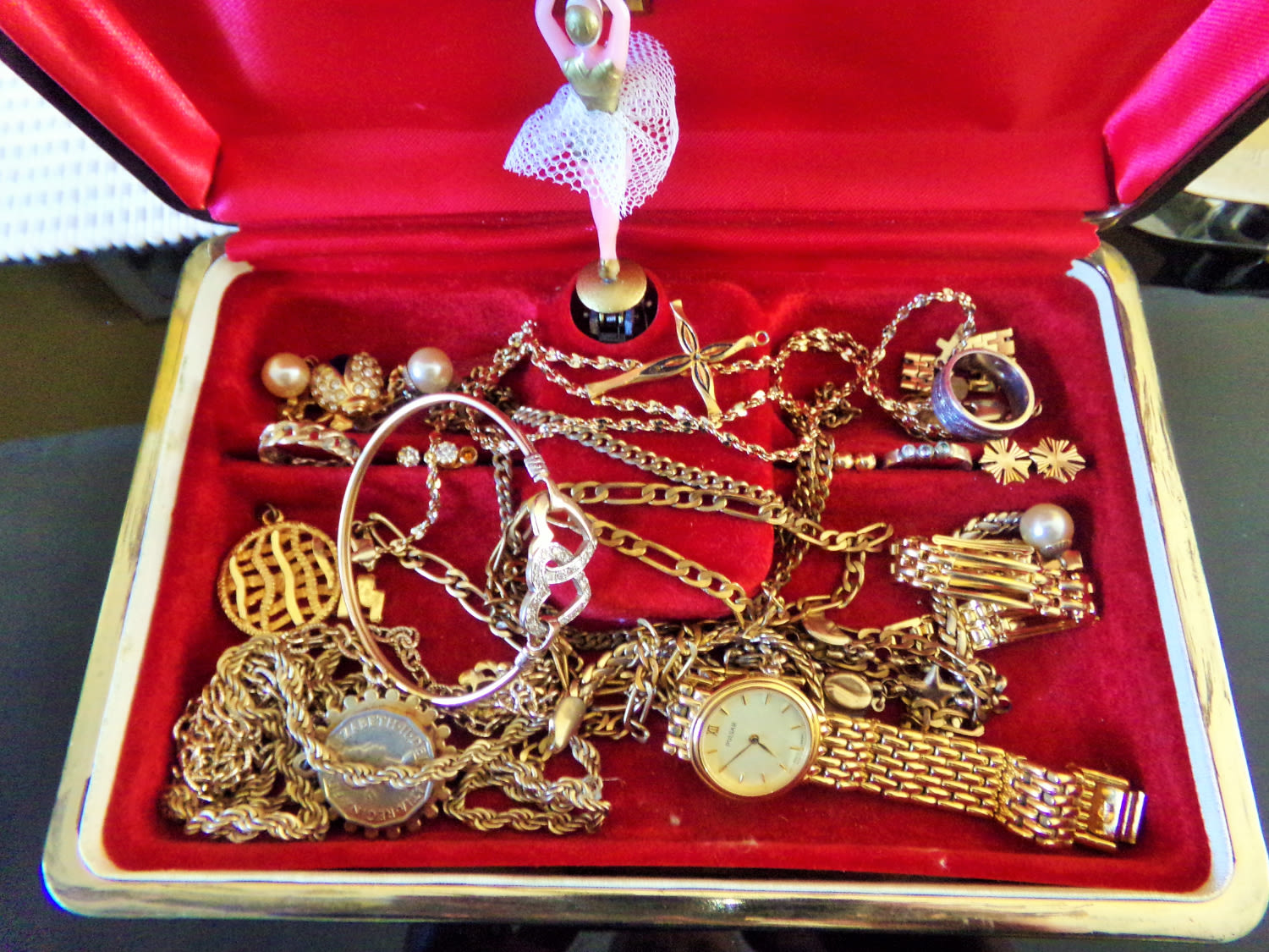 Small parcel of plated costume jewellery Inc. earrings, chains, pulsar watch etc.