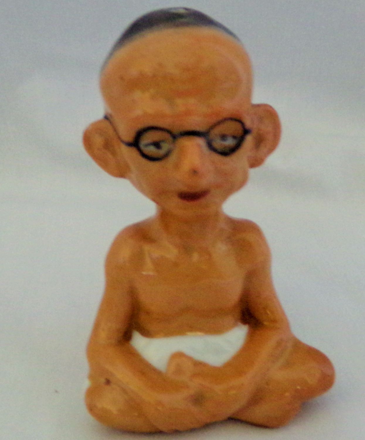 Unusual Rare novelty well modelled pepper pot in the form of Ghandi seated 3” approx.
