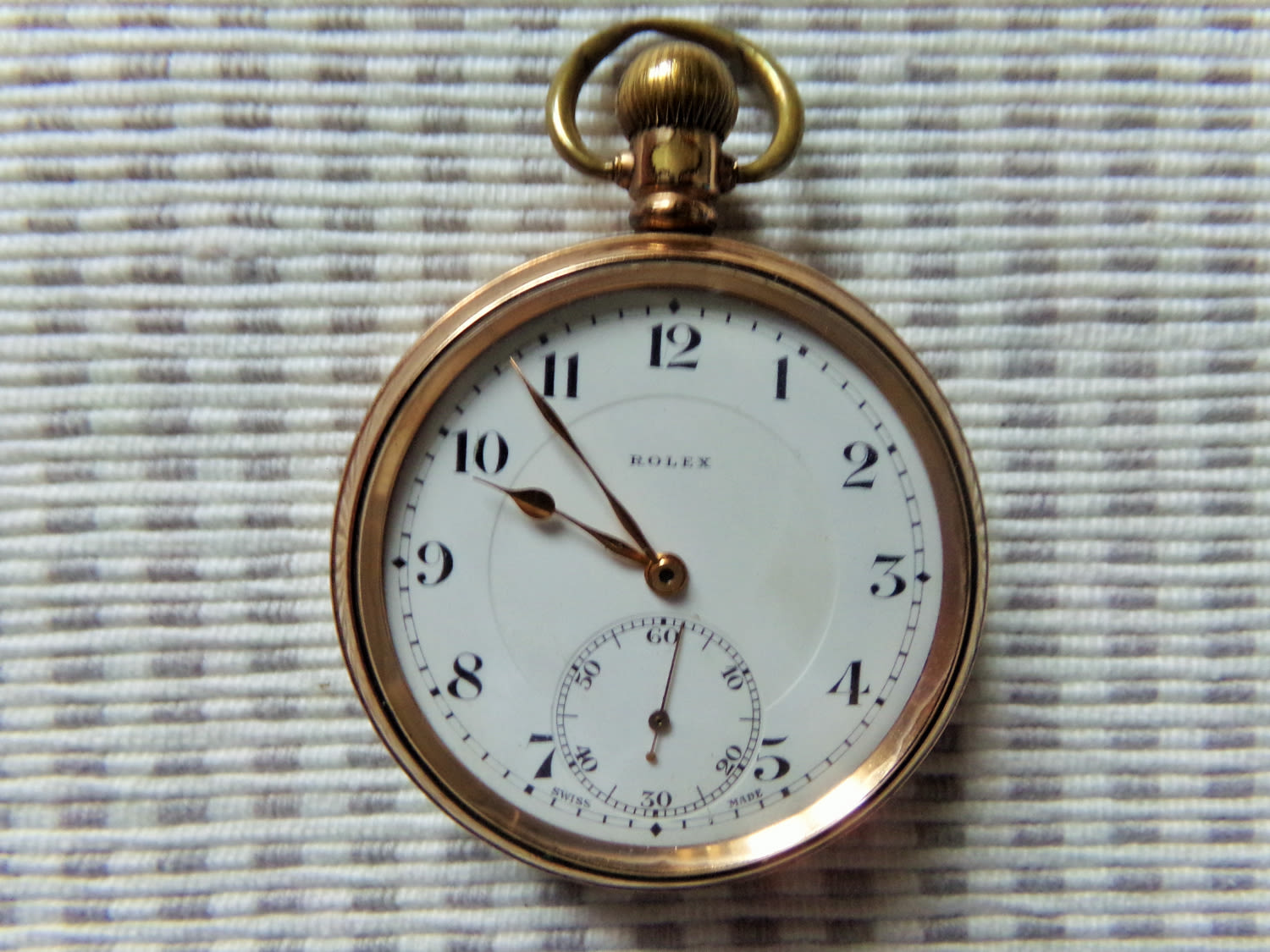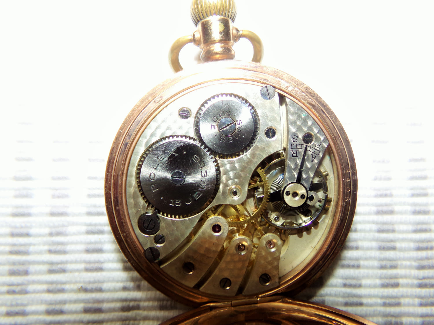 Rolex pocket watch in a gold plated star Denison watch co case. Face signed Rolex, movement signed Rolex 15 jewel. (working )
