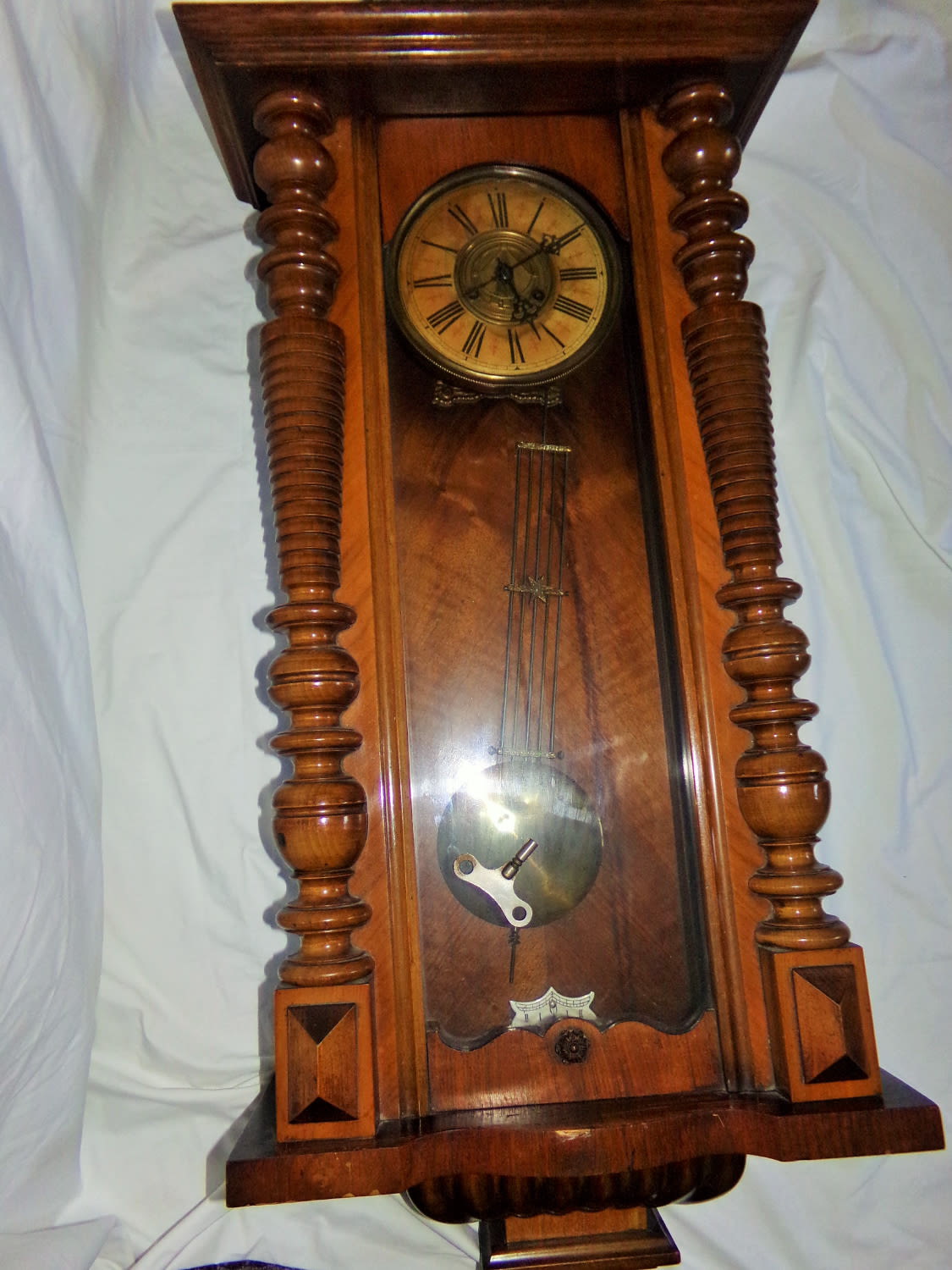 Large antique 38” mahogany cased Vienna wall clock with key