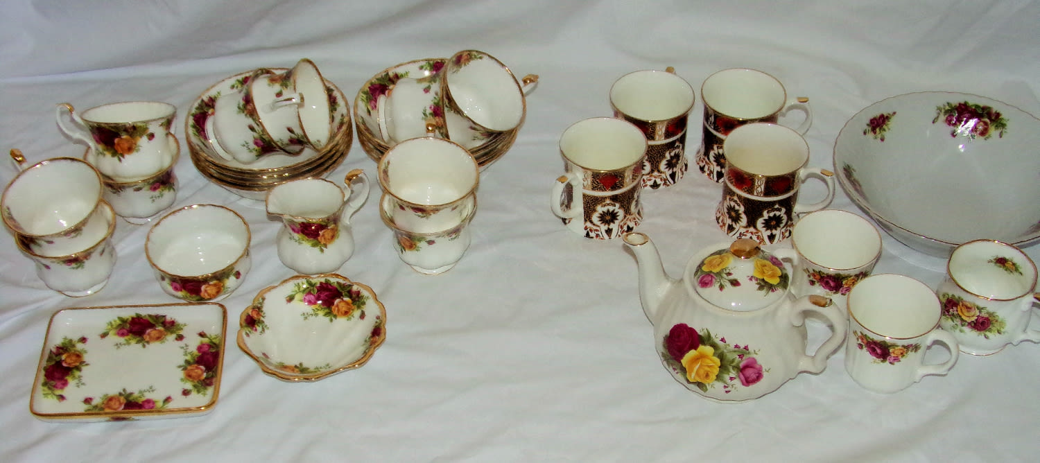 A Selection of assorted china Inc. 8x Royal Albert Country roses pattern bowls ,10 cups , milk & sugar bowl + 2 other dishes and assortment of other china