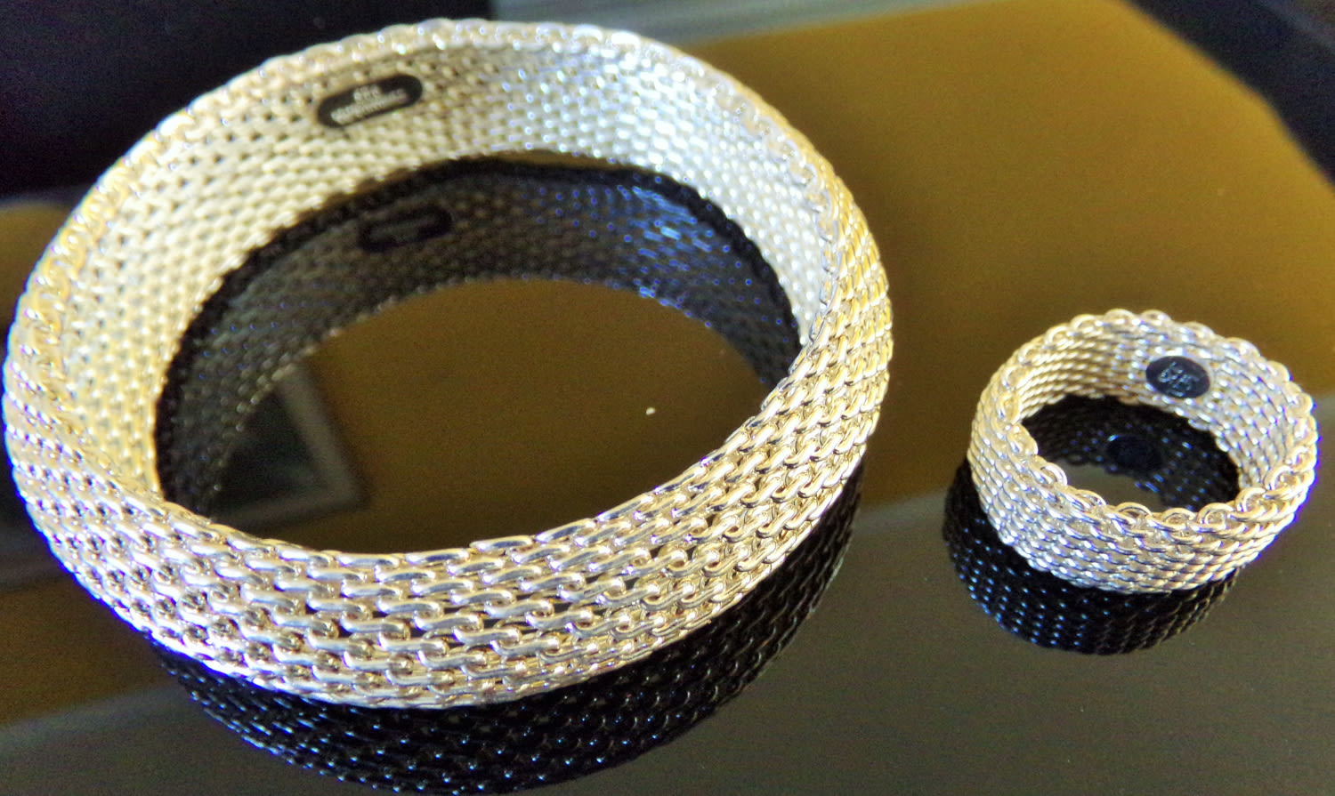 Tiffany & Co Sterling Silver Somerset Mesh Weave Bangle 6cm internal diameter 1.5cm wide and matching silver tiffany weave ring