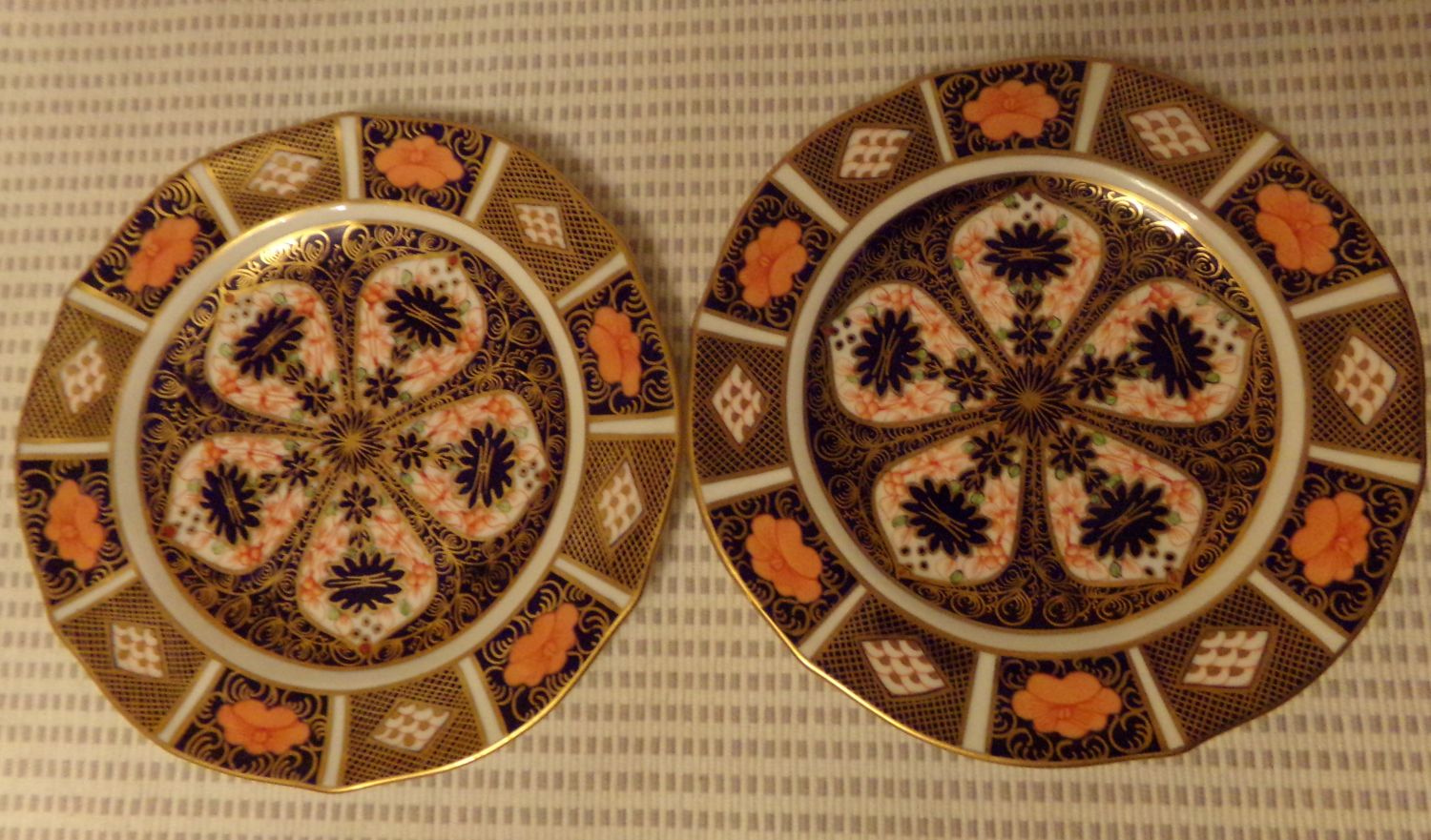 Pair of fluted edged 17.5cm old imari plates Royal crown derby mark & impressed Derby mark