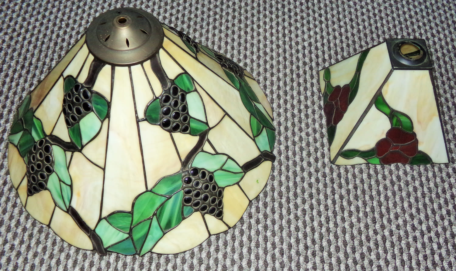 2 x Tiffany style hanging shades large 17” diameter ,small,8” diameter