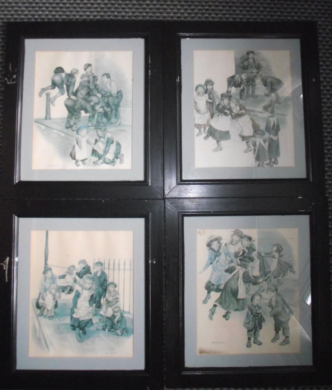 4x Vintage 17 x1 9 framed Ronald Embleton Prints Bygone Days Victorian Playground ( slight foxing to one print )
