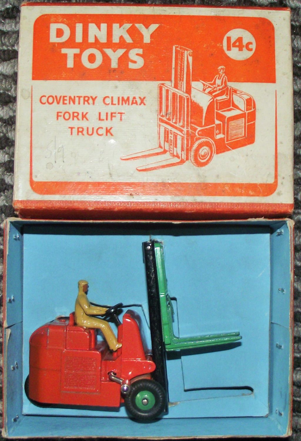 Good condition Dinky Toys 14c Coventry Climax Fork Lift Truck in original Box original paintwork great condition