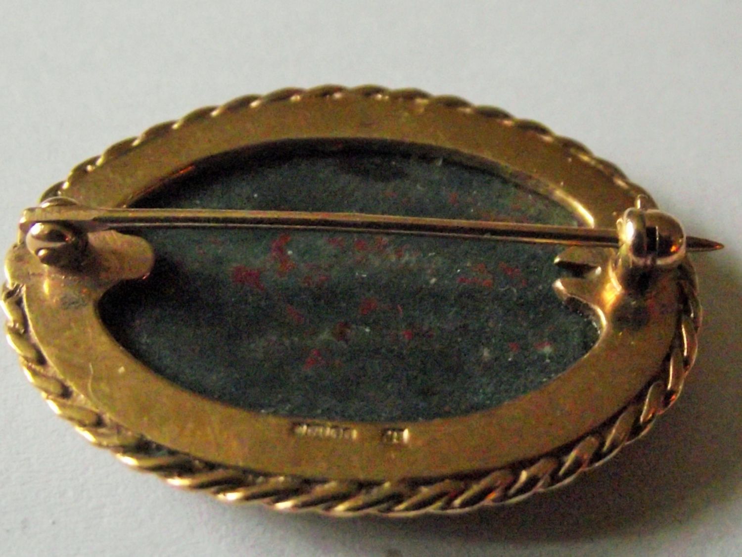 Lovely quality vintage multi coloured hardstone oval shape brooch set in a 9ct gold frame. Fully marked gross weight 7.2g approx.