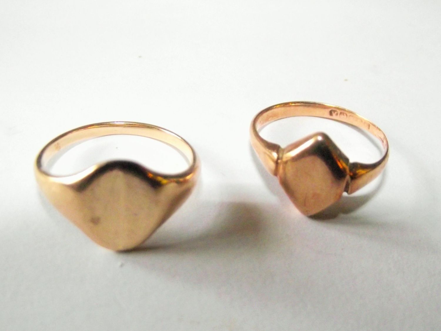 Ladies & gentlemans 9ct signet rings ladies size L gents size M 4.5g approx.