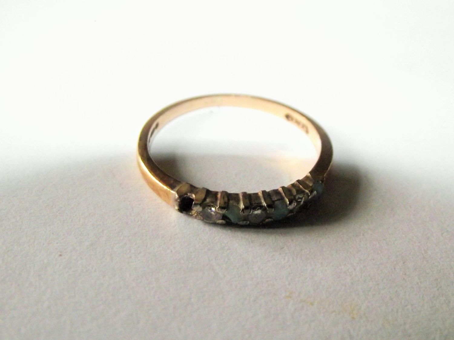 Ladies 9ct gold aquamarine & diamond set ring ( one stone missing ) 1.3g approx.