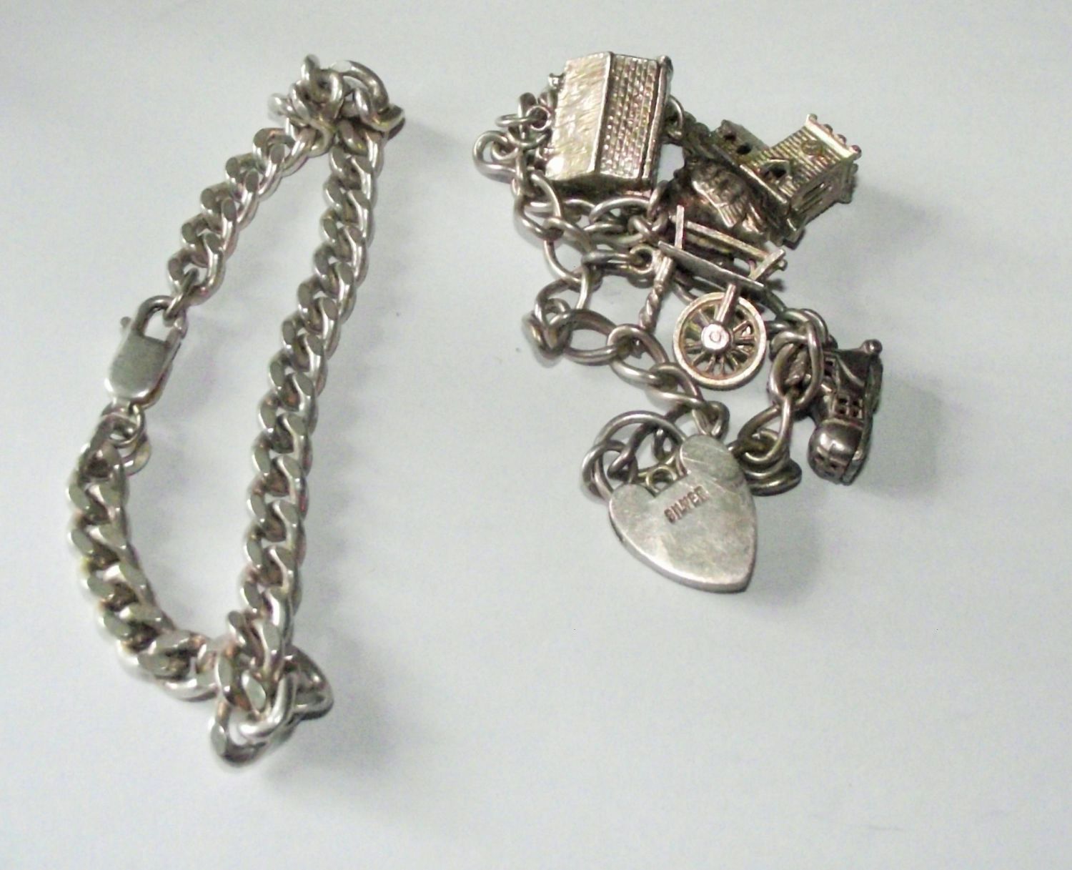 Silver bracelet + silver padlock charm bracelet 40g approx.