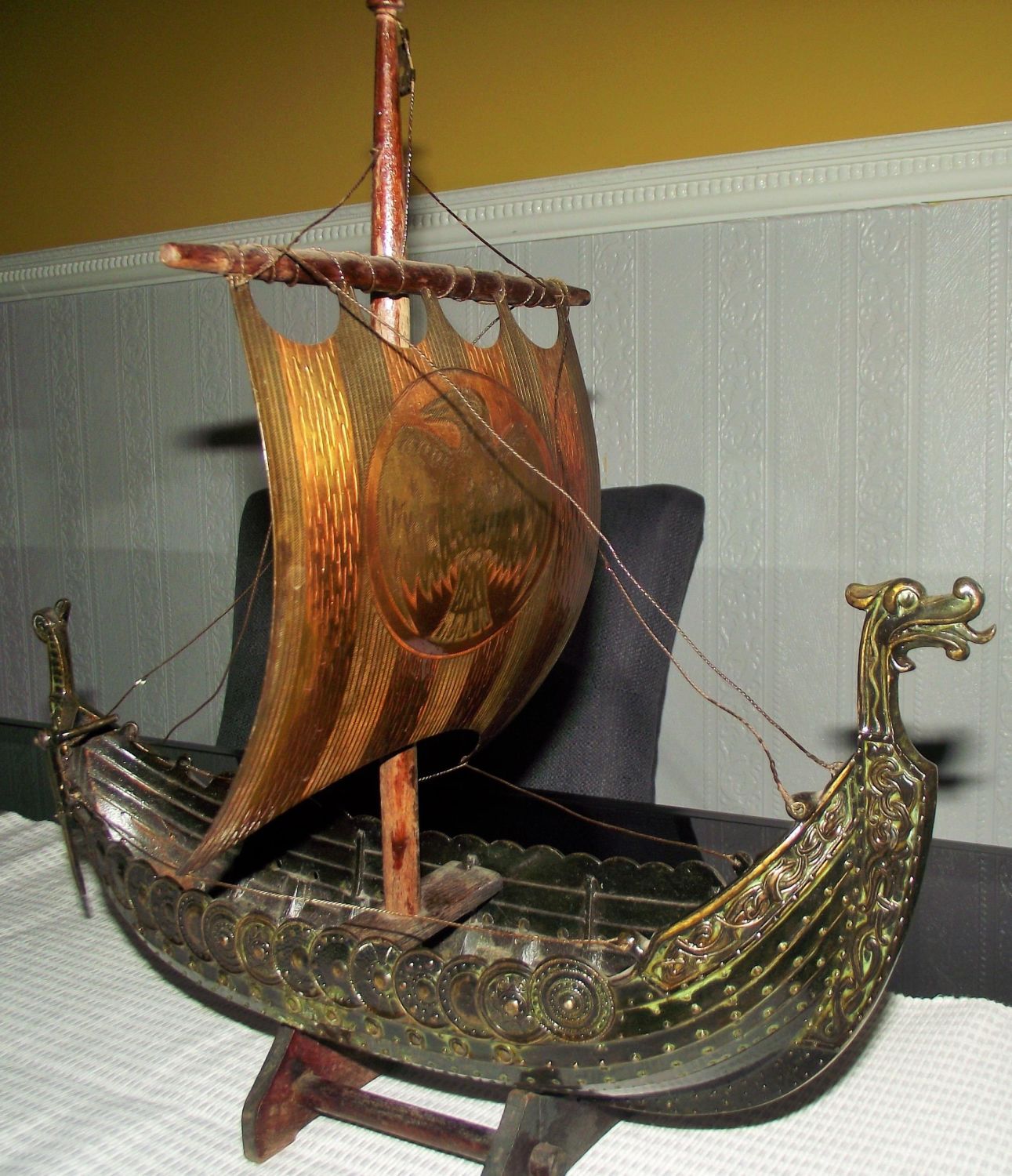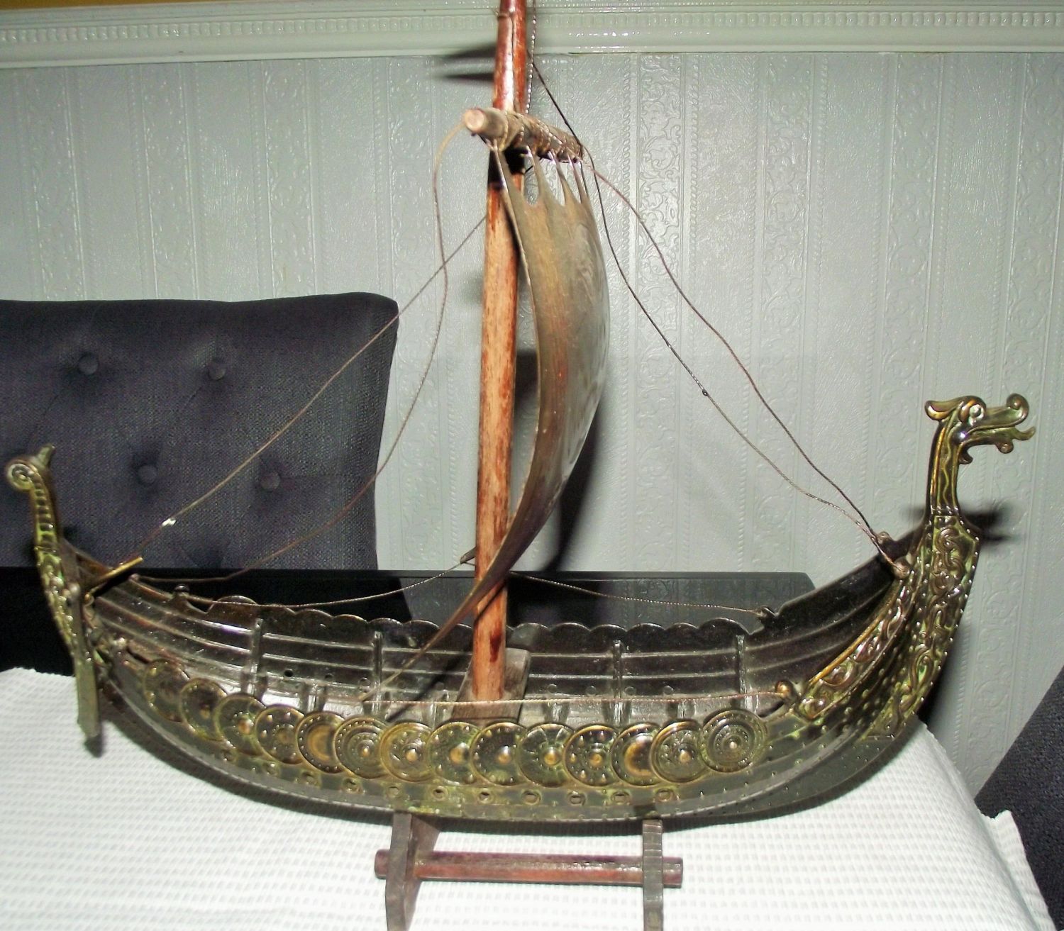 Cast bronze model of a Viking longboat in the manner of Danish artist EDWARD AAGAARD