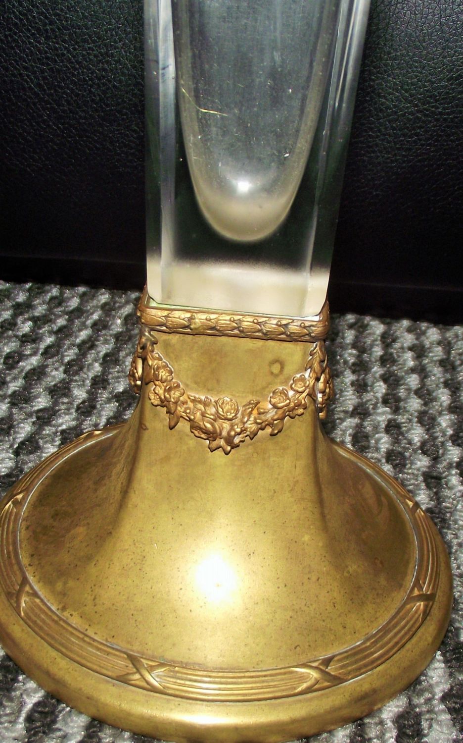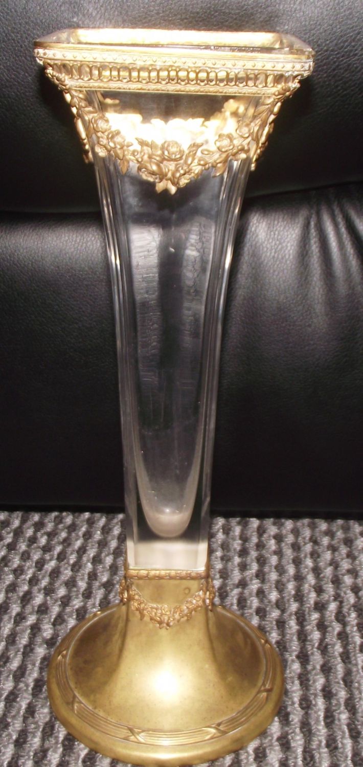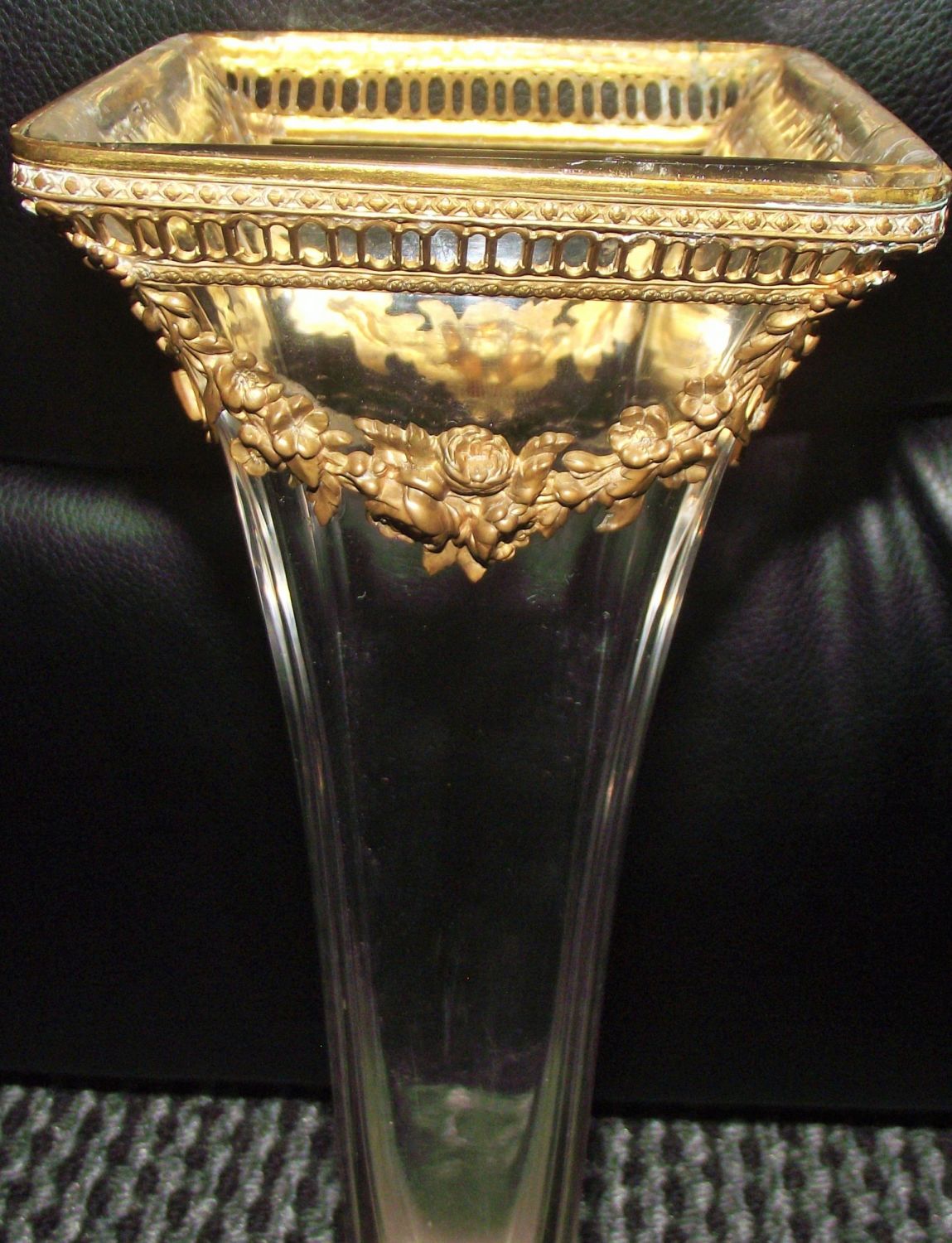 Antique tall 13 French quality ormolu mounted glass trumpet vase circa 1900