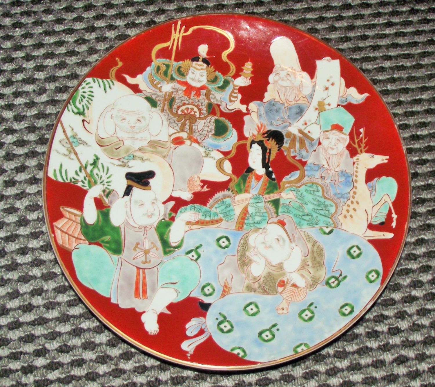 Large kutani style porcelain hand enamel painted charger marked on reverse 12 diameter