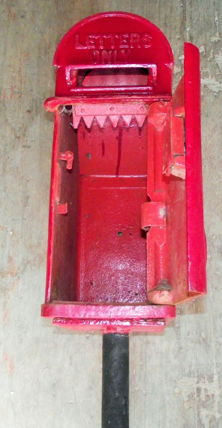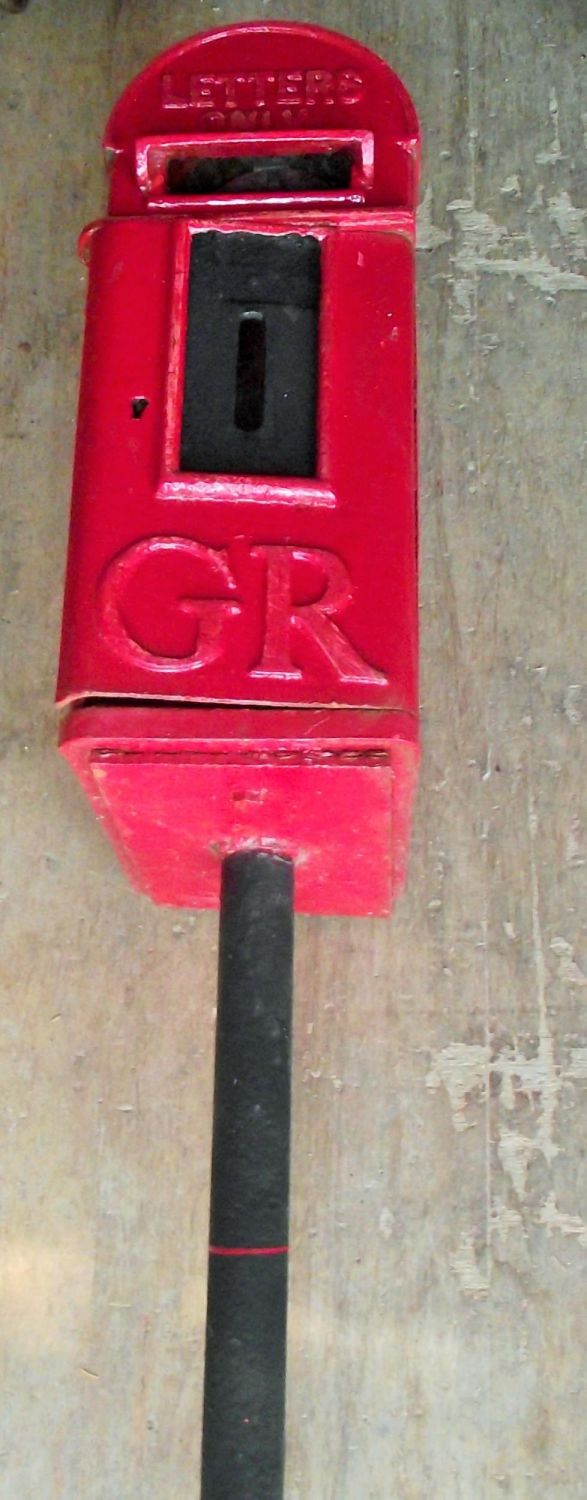 Original Red cast iron Letter box Letters only GR on fixed post ( requires new key- mechanism easy accessible )
