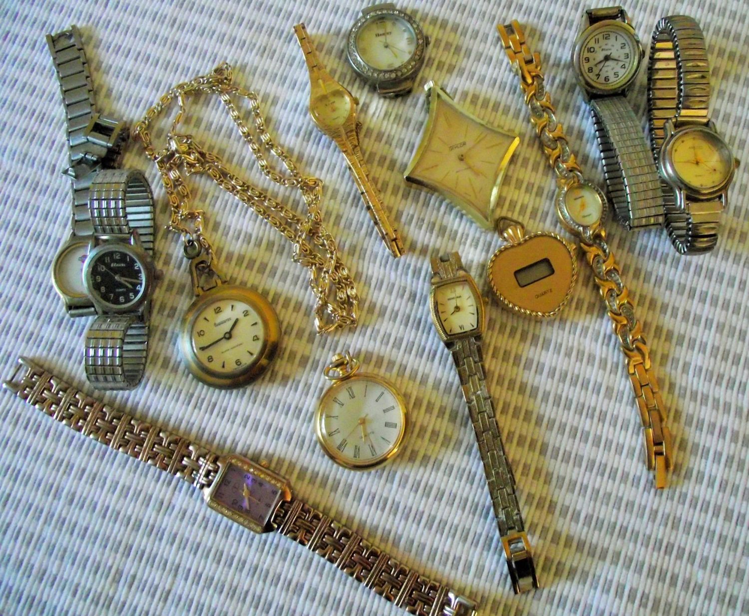 Selection of various watches Inc. 2 ladies Sekonda watches , small plated quartz fob watch, vintage Timemaster & Taylor watches etc.