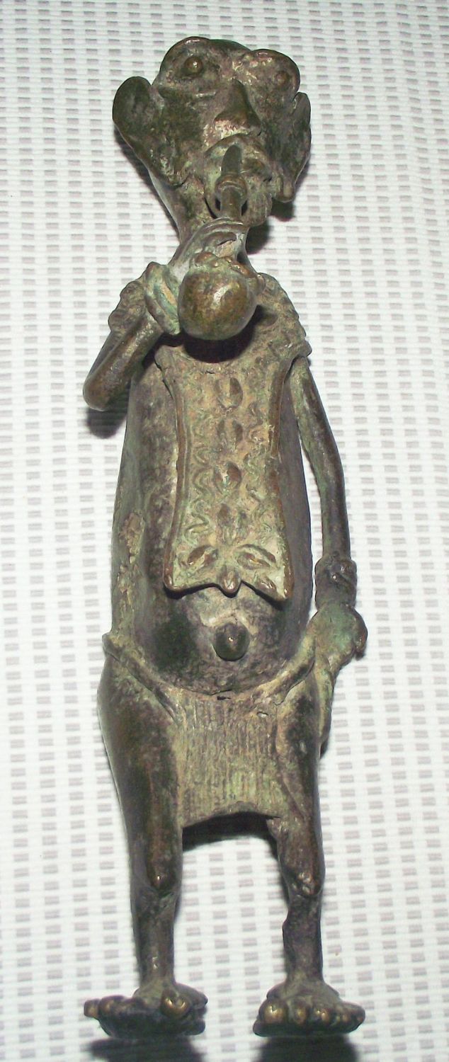 Heavy solid cast 19thc African Benin bronze village elder with pipe wearing traditional ceremonial clothing 11 approx.