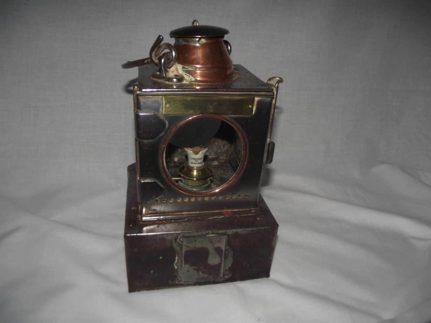 Lovely early railway signal lamp by Lamp Manufacturing & Railway Supplies Ltd, London. Makers brass plaque on the front ( rubbed). LNER stamped on top with "M" stamped one side of the base. The "MOBILITE BURNER" has the name "SHERWOODS BIRMINGHAM" marked on the front.1 side glass missing RD No 711205