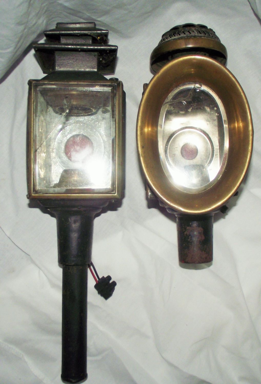 2x Antique carriage lamps both have cracks in glass 1 missing handle bottom