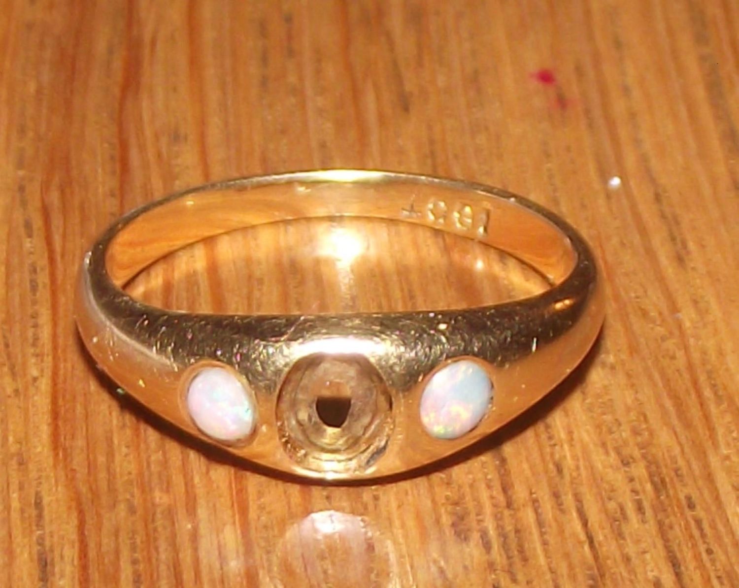 18ct gold small ladies 3 stone set ring central stone missing 2.6g approx. size H