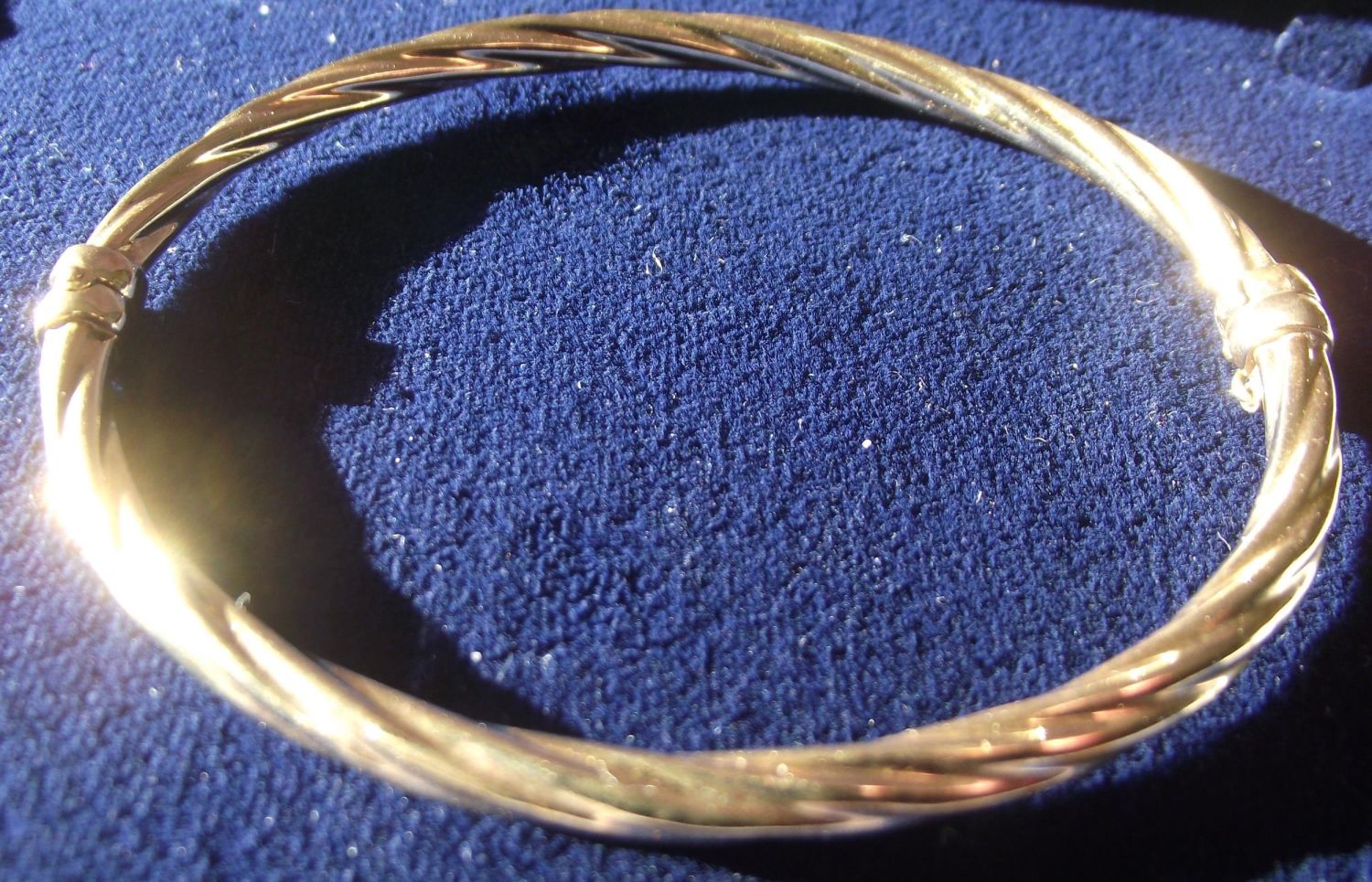 9ct gold ladies hollow twisted bangle with safety clasp 4.6g approx. 7cm diameter