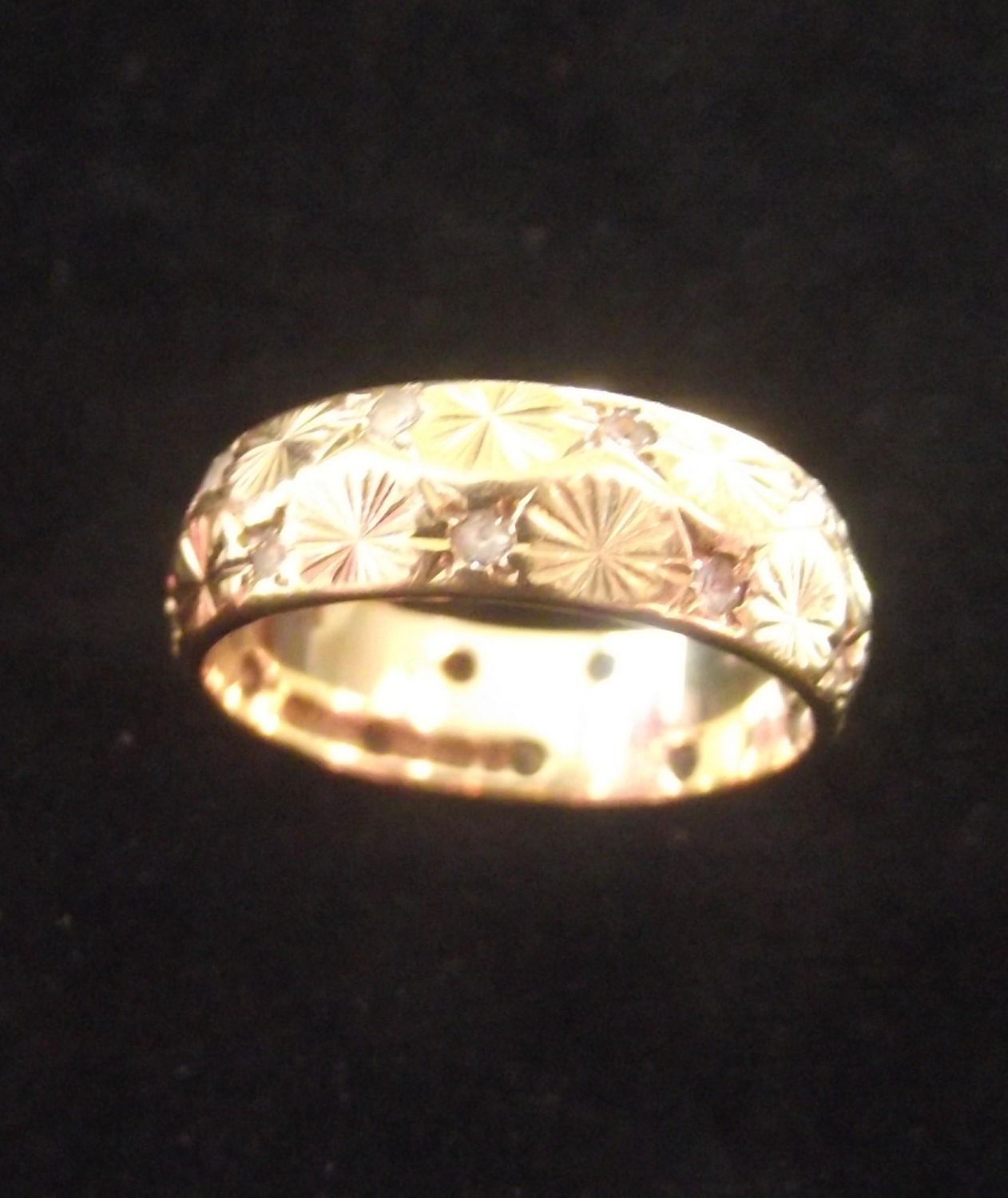 Ladies 9ct gold wedding band set with small chip diamonds 3.9g approx. size M